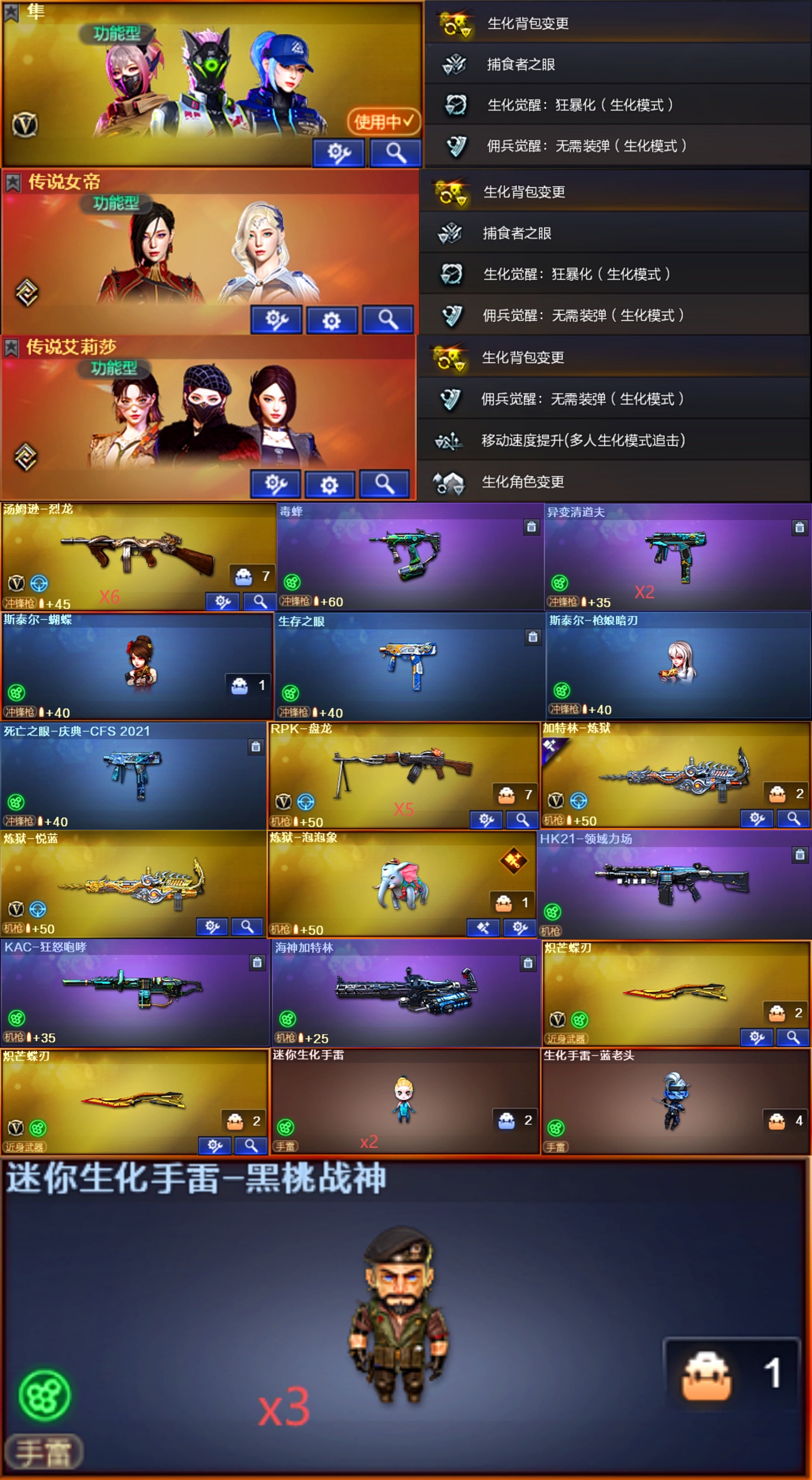 生化天花板 隼 传说女帝 6盘龙 6烈龙 蓝色炼狱泡泡象 毒蜂斯泰尔蝴蝶 枪娘 双炽芒蝶刃 迷你手雷