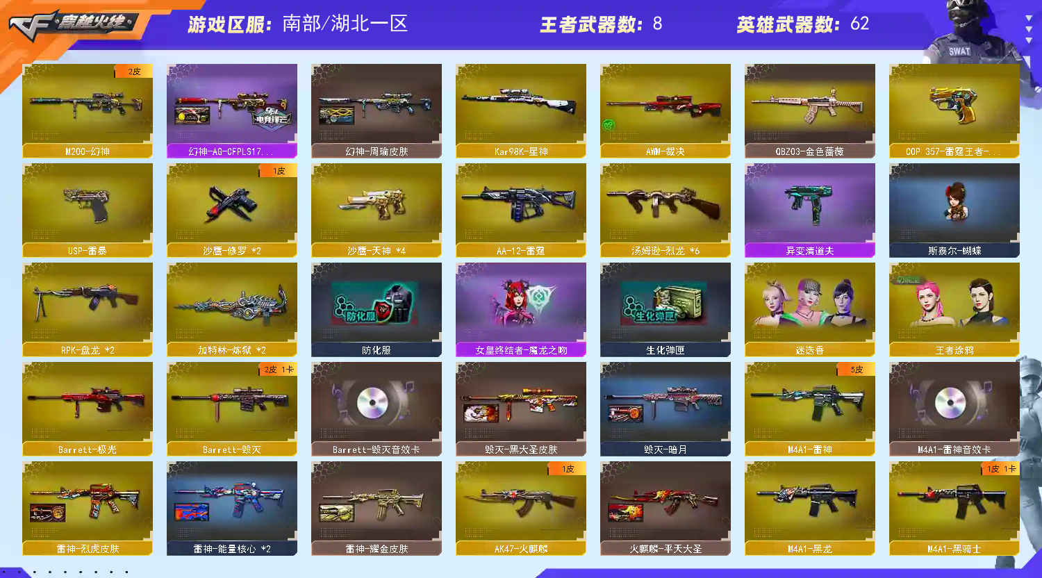 >>>>>>毁号,涉及毁坏虚拟财产罪及计算机安全罪,请文明游戏素质游戏,让我们共建美好租号平台>>>>>> 南部湖北一区幻神➕AG➕周瑜➕星神➕6烈龙王者冰魄雷暴USP清道夫斯泰尔蝴蝶➕金色蔷薇火麒麟雷神黑龙王者之心王者之势➕可排位 注意事项: A.游戏过程中请不要恶意挂机或者不文明发言 B.恶意挂机、顶号等行为将被拉黑无法再次下单 C.进入游戏后中途请勿退出登陆,否则无法再次上号 D.部分账号由于异地登录可能会出现密码错误提示,通常再尝试5-6次后可上号 |||||||||喜欢本账号请点 ☆收藏☆ 方便下次租用,谢谢光临惠顾|||||||||;USP-雷暴,RPK-盘龙,QBZ03-金色蔷薇,M200-幻神,Kar98K-星神,