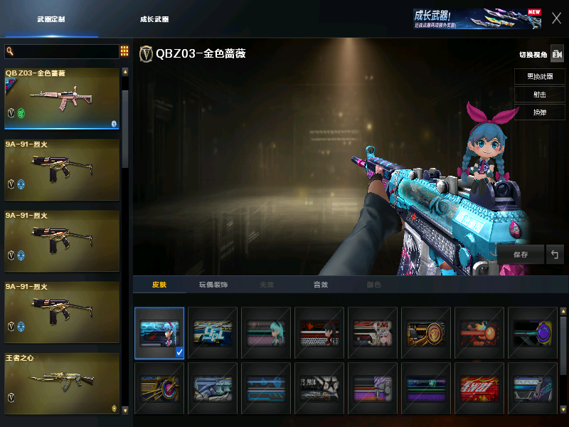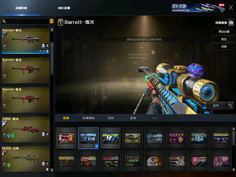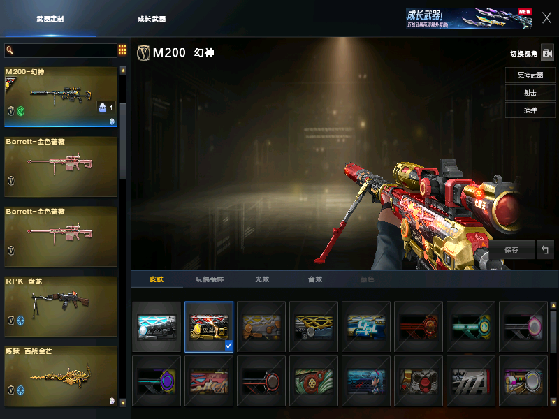 ……;炽芒蝶刃,RPK-盘龙,QBZ03-金色蔷薇,G36C-幻影,M200-幻神,Scar Light-白虎,Kar98K-星神,
