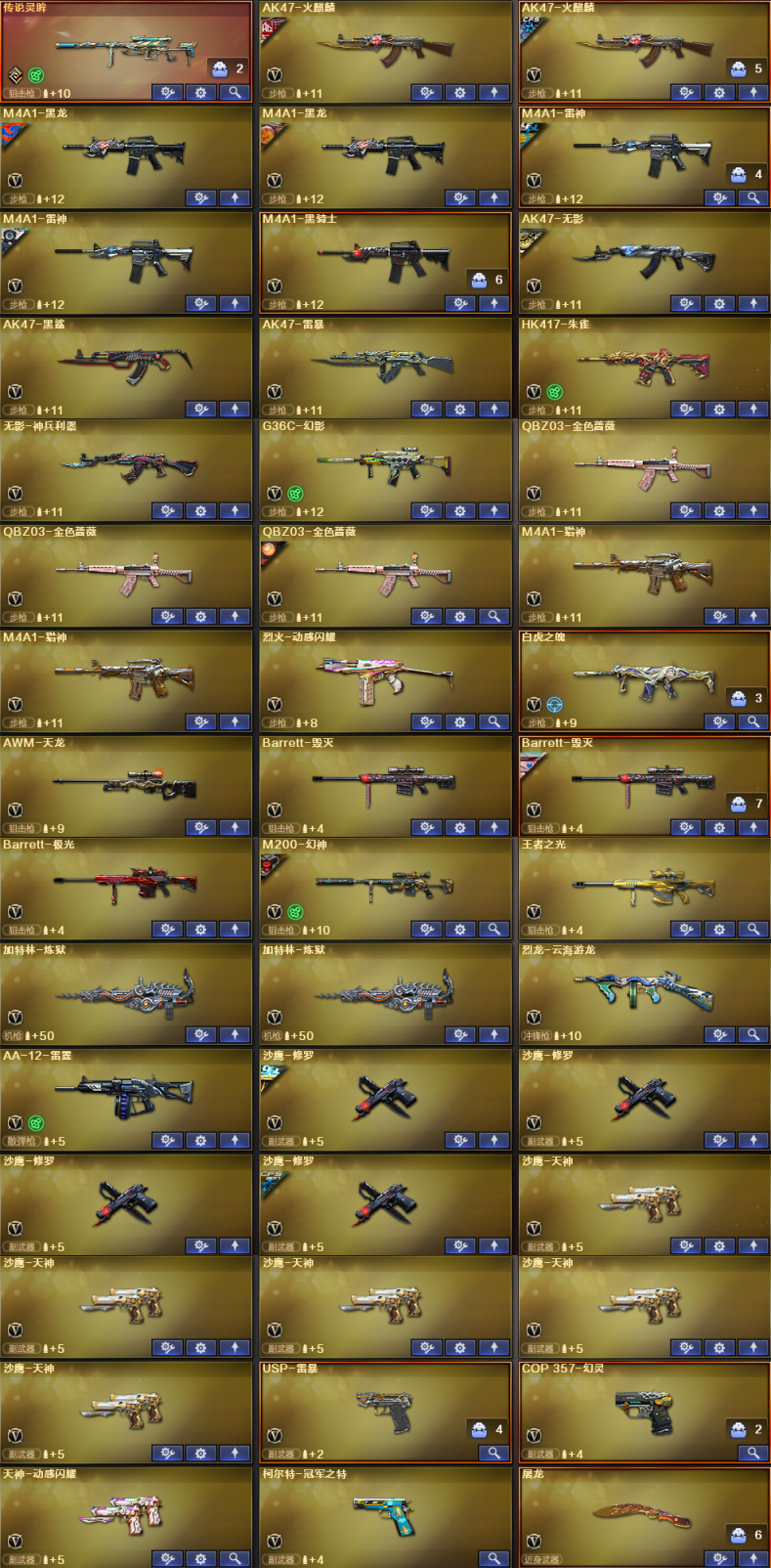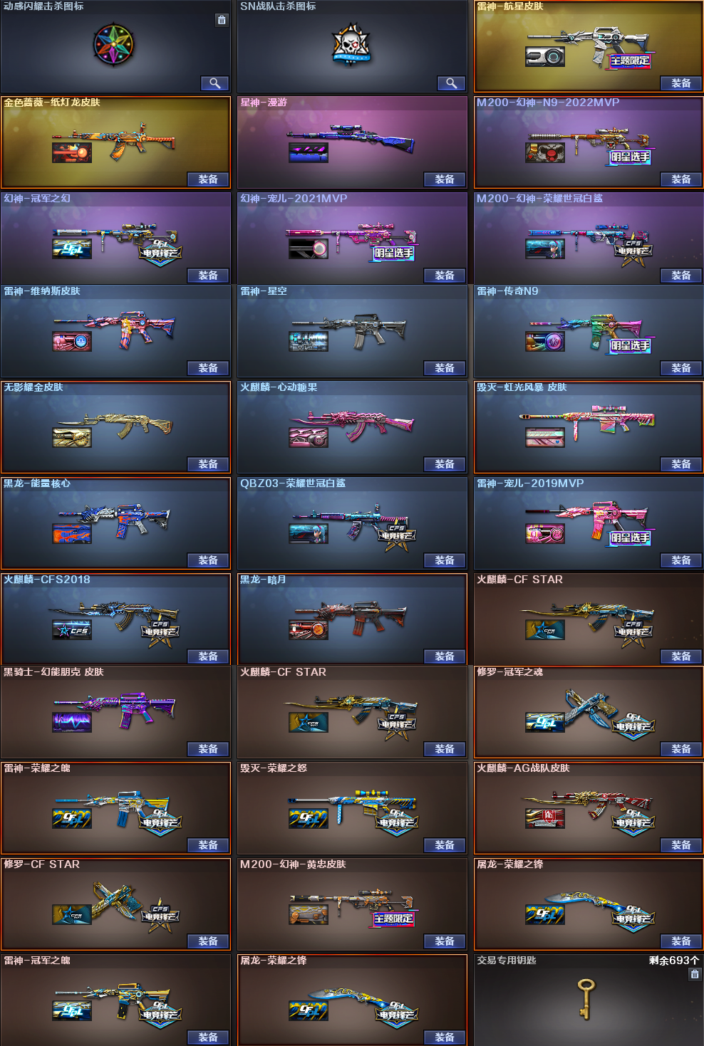 传说灵眸丨幻神5皮肤宠儿N9白鲨冠幻丨G36C幻影丨冠军之特USP雷暴COP幻灵白虎QBZ荣耀之魄 【重要角色13】王者涂鸦/王者潘多拉/王者瞳闭月羞花/角色-王者零/女主播/角色-樱/职业选手/铁骑荣耀/角色-空/灵动武士/灵狐者黄金海岸/角色-幽/司雨【套装1】雷暴套/【传说武器1】传说灵眸【王者武器2】白虎之魄-觉醒版/王者之光-觉醒版【炫金武器8】炫金无影*2/炫金雷神/炫金骑士/炫金毁灭*2/炫金天龙*2【热门武器14】M200-幻神/柯尔特-冠军之特/Knife-冠军之刃/HK417-朱雀/USP-雷暴/4修罗/2炼狱/QBZ03-街机/G36C-幻影/AA12-擎天柱III【英雄武器82】M4A1-猎神*2/M4A1-黑骑士/M4A1-黑龙*2/QBZ03-金色蔷薇*3/HK417-朱雀/M4A1-雷神*2/AK47-火麒麟*2/G36C-幻影/烈火-动感闪耀/AK47-黑鲨/AK47-雷暴/AK47-无影/无影-神兵利器/M200-幻神/AWM-天龙/Barrett-毁灭*2/Barrett-极光/烈龙-云海游龙/加特林-炼狱*2/擎天-云海游龙/擎天*2/龙啸-烈火龙威/麒麟刺*4/屠龙*4/屠龙-云海游龙/斩神刀-雷暴/龙啸/屠龙-动感闪耀/AA-12-雷霆/烟雾弹-雷暴*5/烟雾弹-神工天巧*2/手雷-云海游龙/闪光弹-神工天巧/高爆手雷-神工天巧/高爆手雷-幻灵*2/烟雾弹-幻灵*2/高爆手雷-雷暴*5/闪光弹-雷暴*5/手雷-动感闪耀/沙鹰-修罗*4/沙鹰-天神*5/COP 357-幻灵/USP-雷暴/天神-动感闪耀/柯尔特-冠军之特【热门皮肤24】金色蔷薇-纸灯龙/幻神-宠儿-2021MVP/M200-幻神-黄忠/M200-幻神-荣耀世冠白鲨/幻神-冠军之幻/修罗-冠军之魂/雷神-冠军之魄/M200-幻神-N9-2022MVP/雷神-宠儿-2019MVP/雷神-传奇N9/QBZ03-荣耀世冠白鲨/火麒麟-CFSTAR*2/修罗-CFSTAR/无影耀金/屠龙-荣耀之锋*2/雷神-荣耀之魄/毁灭-荣耀之怒/雷神-星空/火麒麟-心动糖果/星神-漫游/雷神-航星/火麒麟-AG【人偶武器8】火麒麟-灵狐*2/迷你波特博士*3/夺魂/深渊终结者手雷/AWM-灵狐-15周年嘉年华【挑战武器7】M4A1-黑骑士/神圣爆裂者-末日III/激光毁灭者III-白马银枪/激光毁灭者I*2/巨龙咆哮-深渊金/乱世-超越2【音效卡武器2】火线妹语音包/Barrett-毁灭音效卡【普通皮肤5】黑龙-能量核心/雷神-维纳斯/黑龙-暗月/黑骑士-幻能朋克/毁灭-虹光风暴【光效3】屠龙-流星光效/王者之光金色光效/M4A1-雷神蓝粉色光效【玩偶12】15周年玩偶/幸运牛仔玩偶/幸运牛仔玩偶/浣熊玩偶/电磁巨兽玩偶/幸运鼠玩偶/黄金幸运猪猪玩偶/CFS纪念版人偶/胡司令玩偶/羊驼玩偶/云螭玩偶/次元之矛-黄金迷你玩偶【戒指武器9】15周年限定戒指/24赛季纪念戒指-耀银(食指) /24赛季纪念戒指-耀银(拇指)/25赛季纪念戒指-耀银(食指)/25赛季纪念戒指-耀银(拇指)/龙眼(鹰)/龙眼(死神)/23赛季纪念戒指-耀铜(食指)/皇龙戒;USP-雷暴,柯尔特-冠军之特,Knife-冠军之刃,QBZ03-金色蔷薇,G36C-幻影,M200-幻神,传说灵眸,