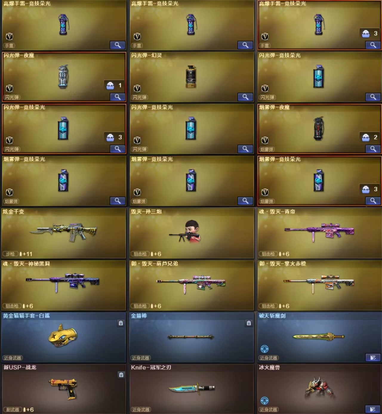 亲:订单结束后记得收藏好评哦 !!!;USP-雷暴,柯尔特-冠军之特,Knife-冠军之刃,电竞教官-云悠悠,QBZ03-金色蔷薇,M200-幻神,