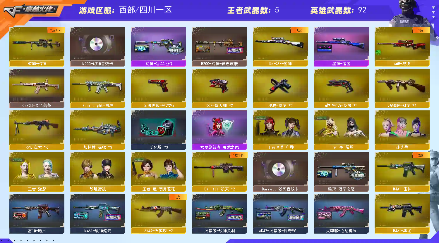 • 游戏区服:穿越火线 / 电信区 / 四川一区