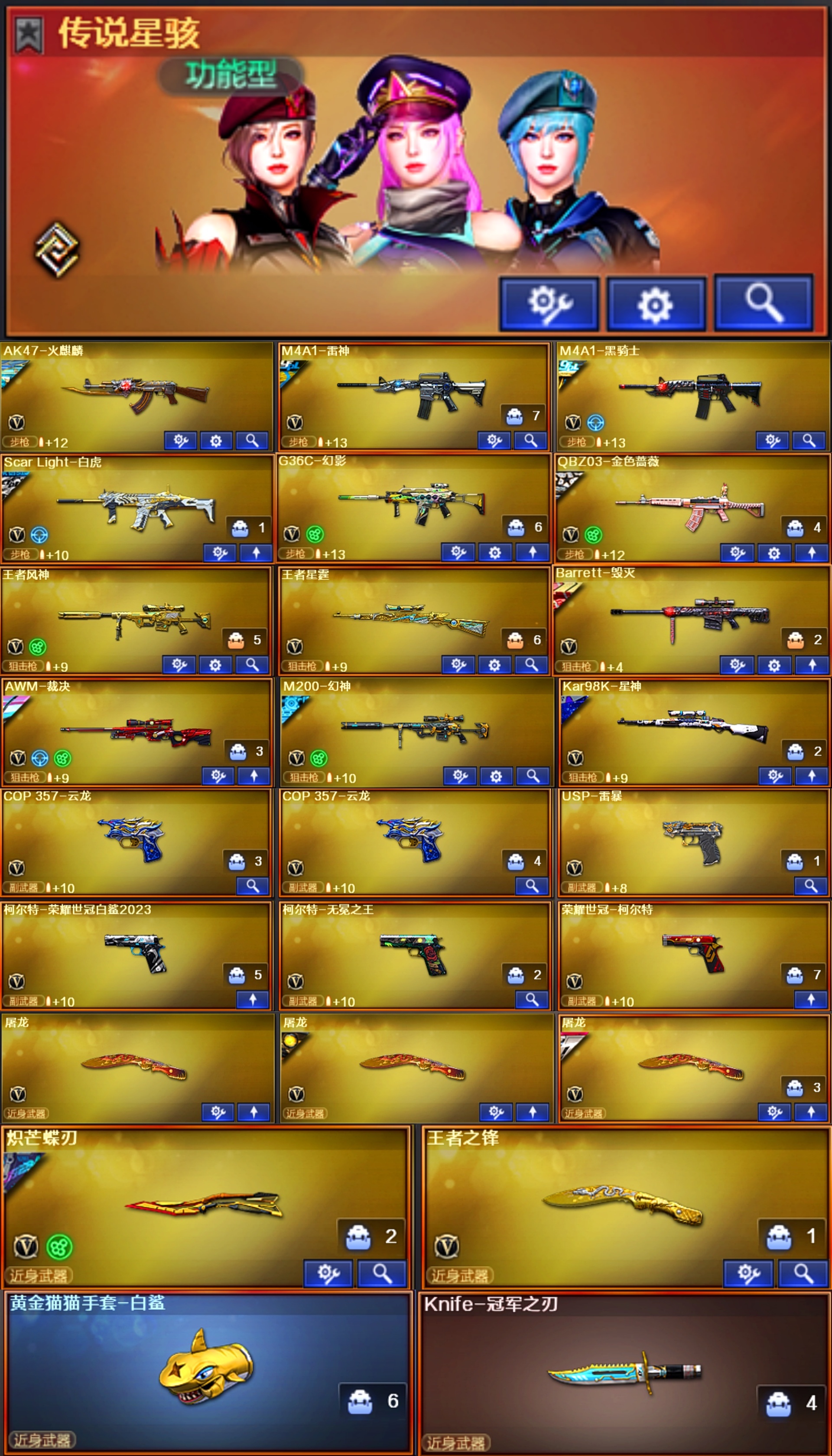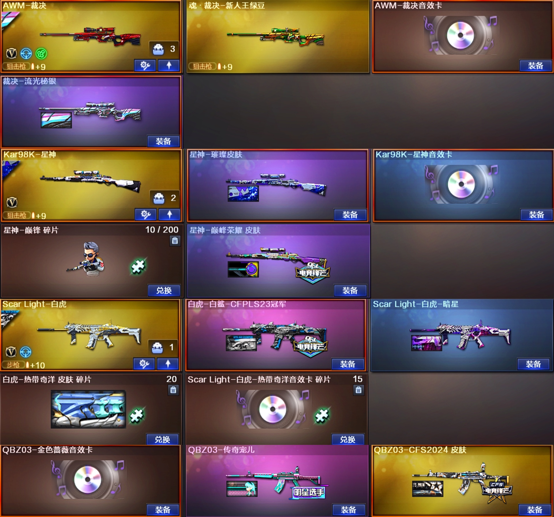 星骇幻影♥幻神音效卡5皮光海夜阑星火AG♥裁决音效卡流光♥白虎白鲨蔷薇3皮带卡♥3柯尔特冠军刀