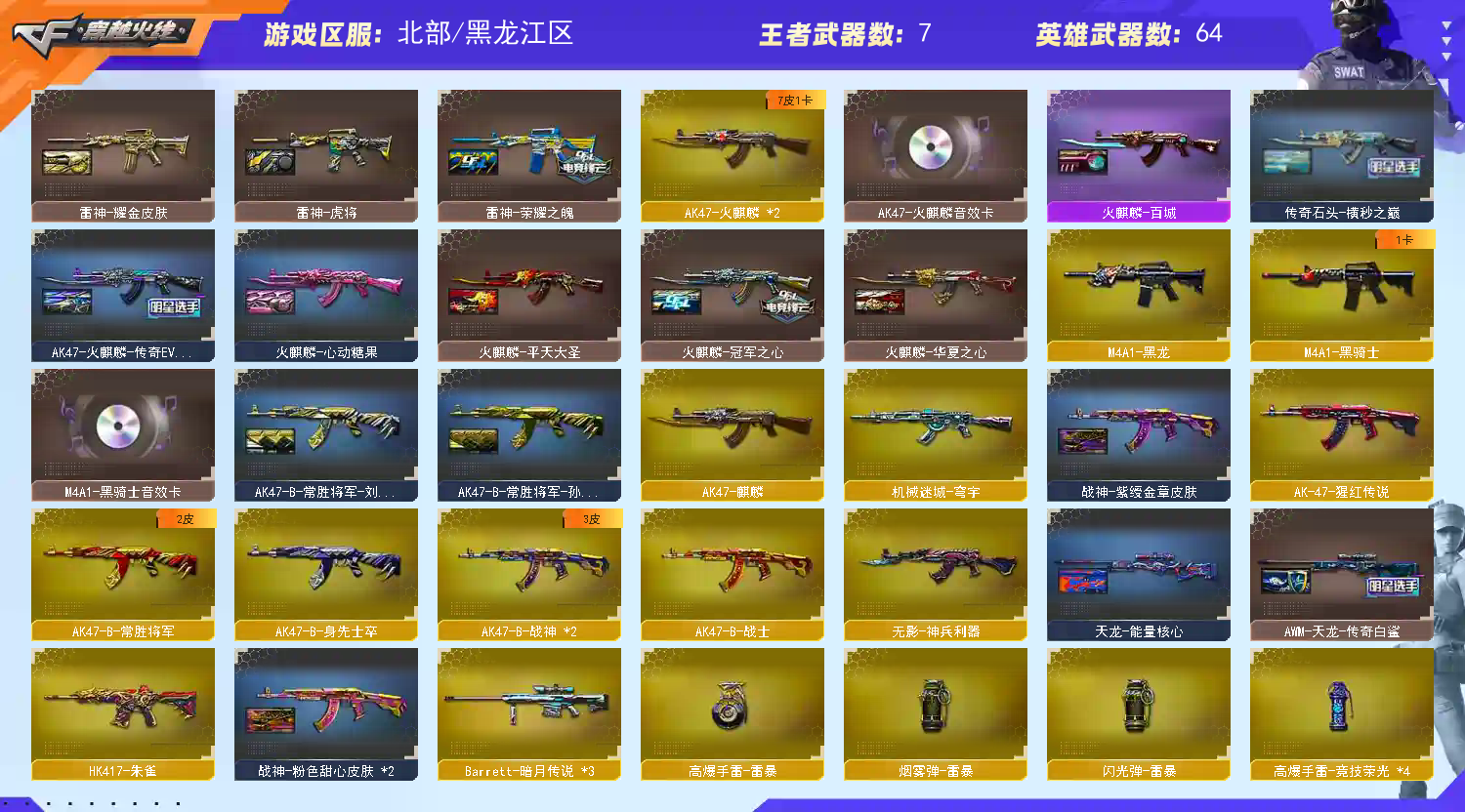 • 游戏区服:穿越火线 / 网通区 / 黑龙江区