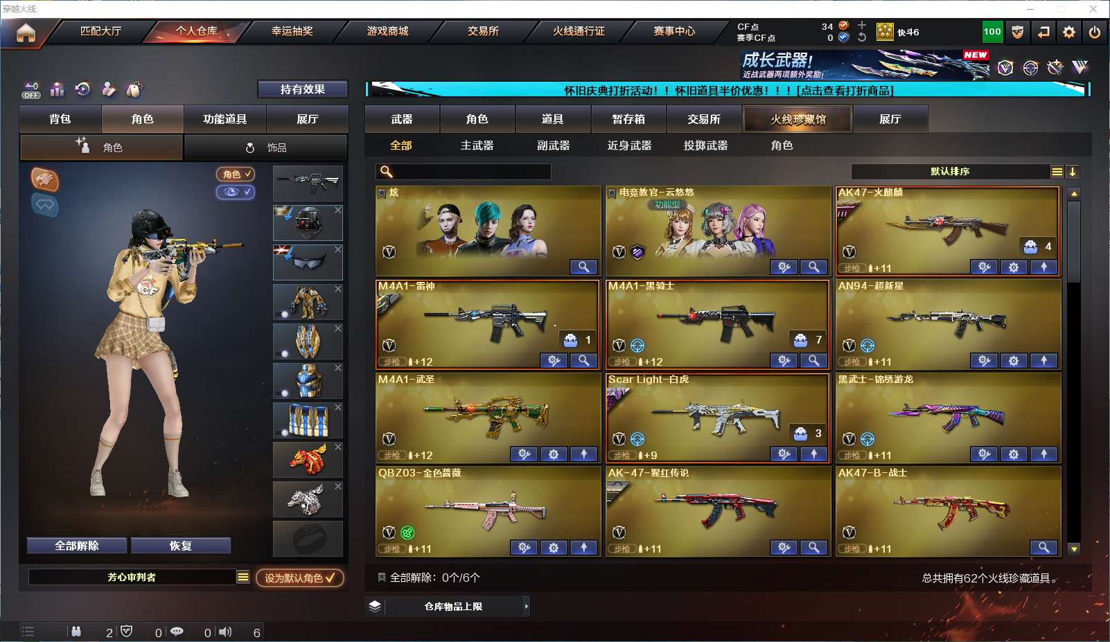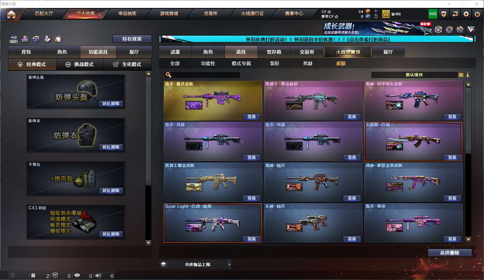 【白虎三件套!!!】【m200幻神+usp雷暴+4防云悠悠】【竞技荣光套装】 【王者星神】 【白虎+白虎音效卡+暗星皮肤】 【qbz03金色蔷薇】 【4炼狱+2烈龙+盘龙】【王者之决 王者之怒】【黑骑士+黑骑士音效卡】 【毁灭+毁灭音效卡】 【火麒麟 雷神 超新星 武圣 黑武士锦绣游龙 源雷神iv 猩红传说 战士 雷霆】——【usp雷暴 沙鹰修罗 武圣 柯尔特竞技荣光】——【屠龙 麒麟刺 马来剑夜魔 幻灵之锋 擎天竞技荣光 cop358雷霆王者】——【夜魔投掷武器套装 幻灵投掷武器套装 竞技荣光投掷武器套装*4 雷霆王者投掷武器套装】——【热门武器/小人呛】【炫金骑士 裁决雪莉杨】——【角色】【4防(电竞教官云悠悠 王者葵惊若翩鸿)】;USP-雷暴,电竞教官-云悠悠,RPK-盘龙,QBZ03-金色蔷薇,M200-幻神,Scar Light-白虎,