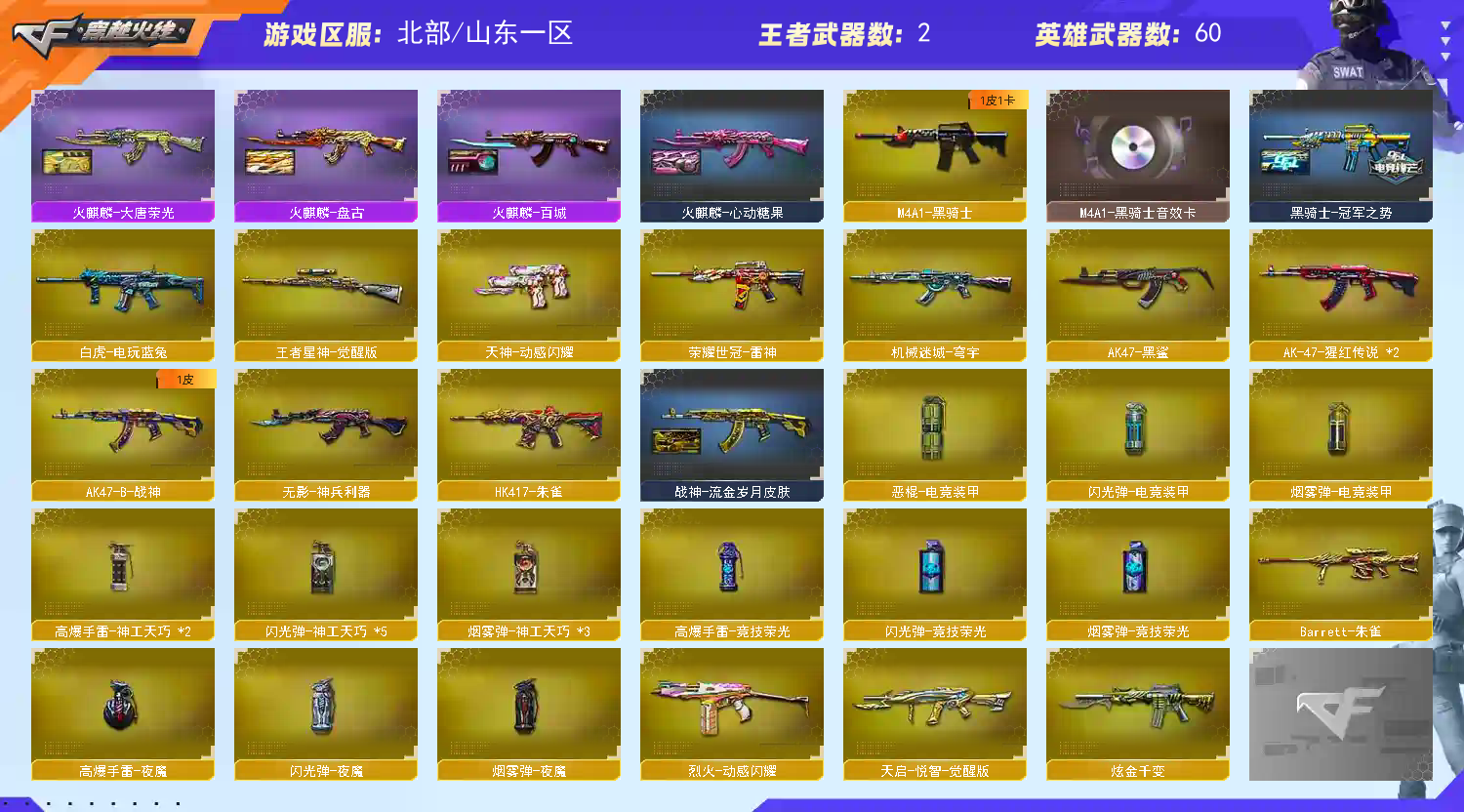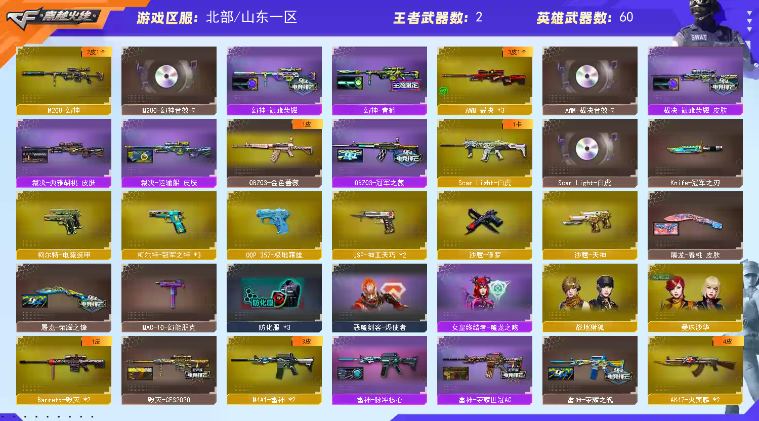 • 游戏区服:穿越火线 / 北部 / 山东一区