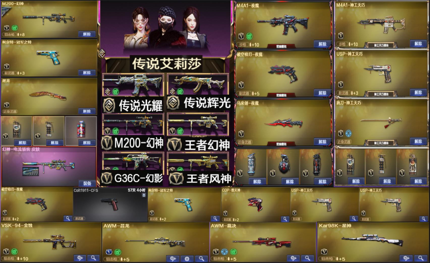 传说艾莉莎辉光⭐幻神+王者幻神+风神+星神丨冠薇冠特⭐夜魔套/神工套②usp幻影白虎⭐六盘六烈生化套