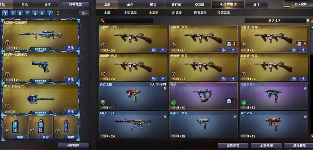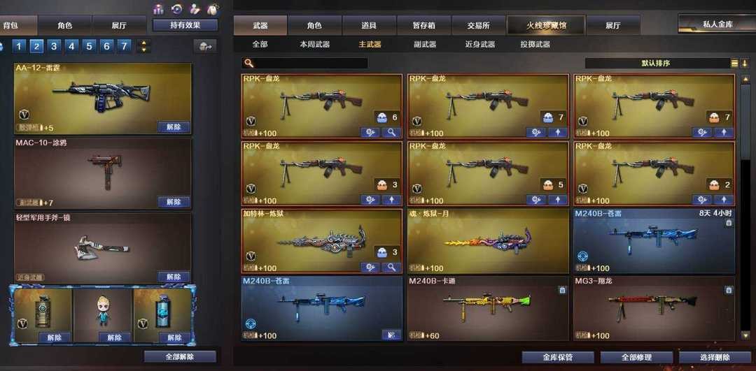 竞技荣光⚡生化背包⚡6烈毒蜂清道夫⚡6盘雷霆a12⚡东部生化弹夹满-毒蜂清道夫-禁挂禁宏;USP-雷暴,电竞教官-云悠悠,RPK-盘龙,QBZ03-金色蔷薇,