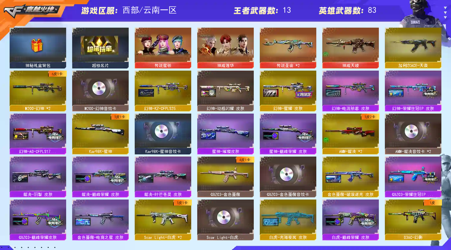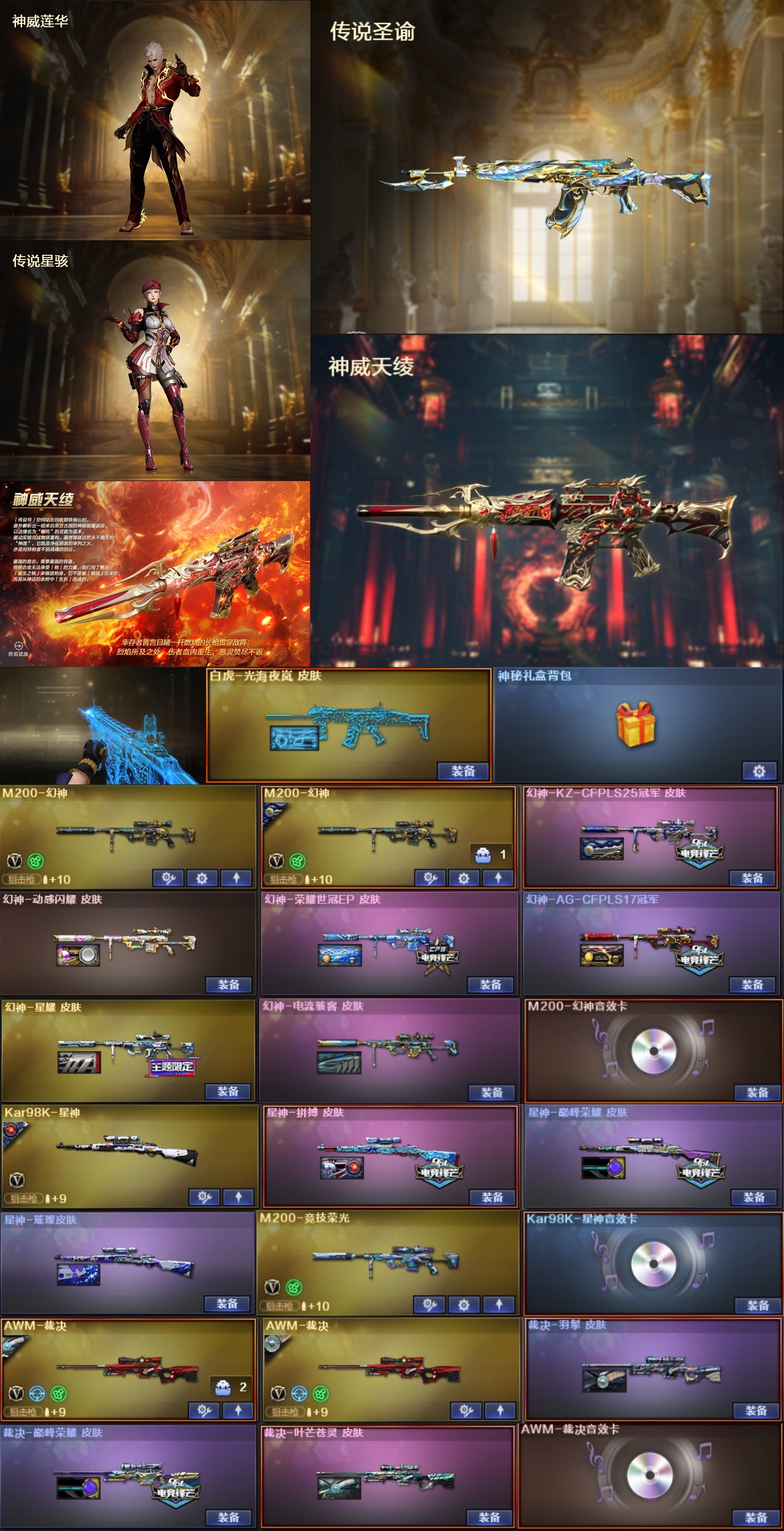 [西部]神威天绫+莲华星骇⭐光海白虎拼搏音卡QBZ套⭐双幻神KZ+EP套星神拼搏套裁决套⭐蝴蝶刀*3