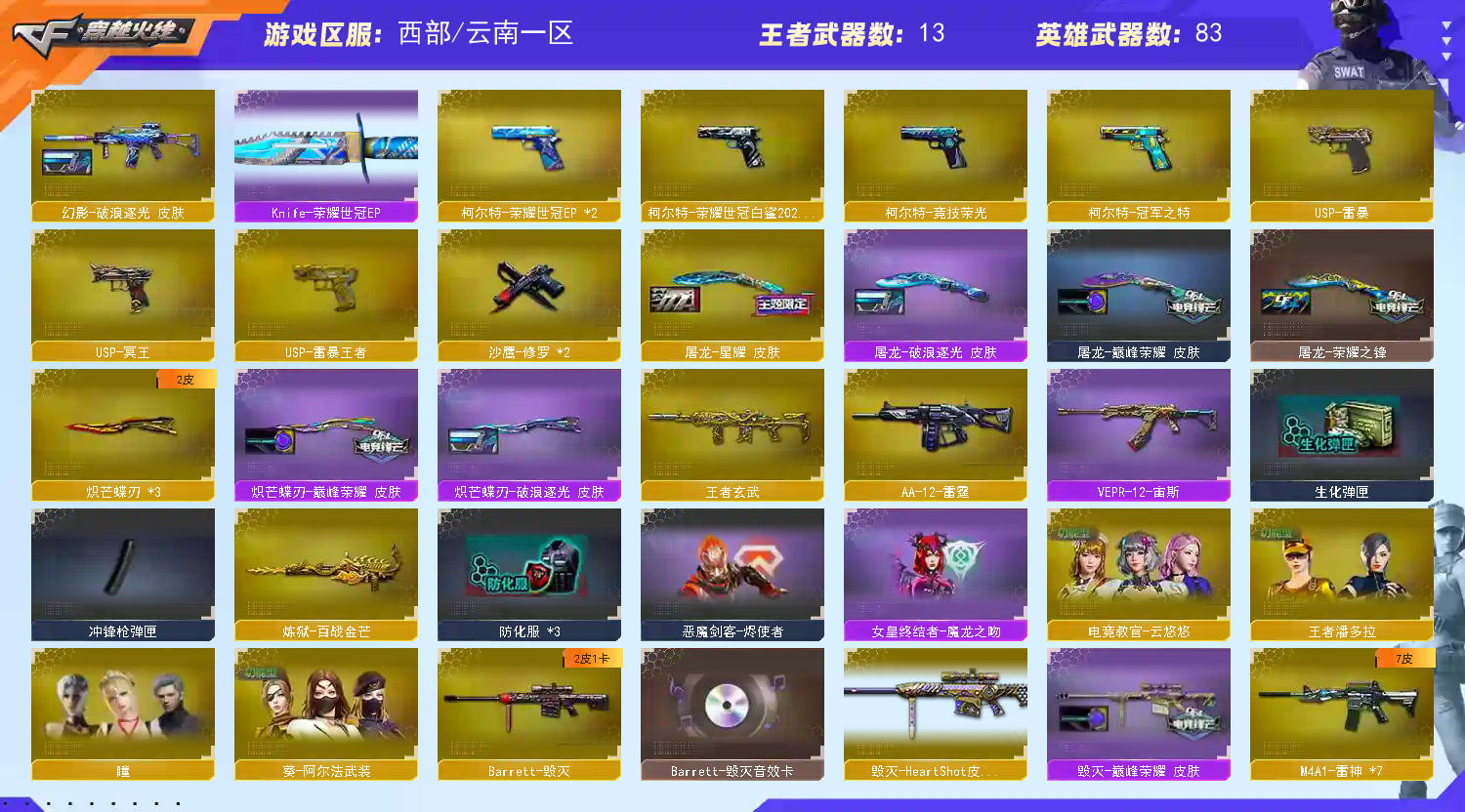 • 游戏区服:穿越火线 / 西部 / 云南一区