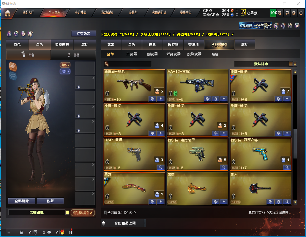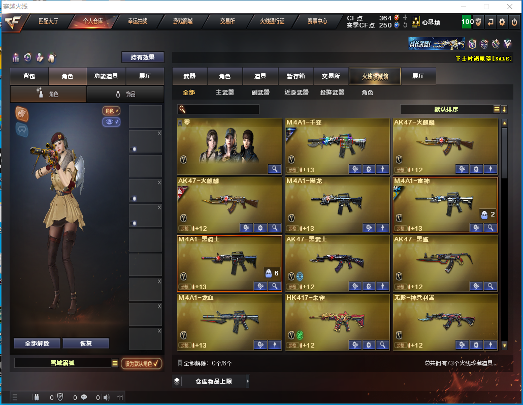 【黑龙江区-黑龙江】 70V6王者3炫金【主武器类型】 M200-幻神 白虎电玩蓝兔 HK417-朱雀 王者之怒觉醒版 Barrett-毁灭 AWM-裁决 M4A1-雷神 QBZ03-金色蔷薇 M4A1-黑龙 M4A1-黑骑士 王者之幻觉醒版 M4A1-千变 M4A1-龙血 王者之心觉醒版 AK47-火麒麟 *2 *2 无影神兵利器 AK47-黑武士 黑武士CF网剧冠军 AK47-黑鲨 烈火-9A-91 汤姆逊-烈龙 *6 *6 斯泰尔-蝴蝶 RPK-盘龙 AA-12-雷霆 AWM-天龙 炫金雷神 炫金毁灭 炫金武士 金色小号 AKB-战士 AKB-战神 AK猩红传说 *3 *3 黑骑士海王 Barrett暗月传说 试炼破坏者 黄金AK 高爆手雷雷霆 闪光弹雷霆 烟雾弹雷霆 高爆手雷雷暴 *4 *4 闪光弹雷暴 *4 *4 烟雾弹雷暴 *4 *4 恶棍电竞装甲 闪光弹电竞装甲 烟雾弹电竞装甲 动感闪耀手雷 【王者武器】 【副武器类型】 USP雷暴 柯尔特-冠军之特 沙鹰-修罗 *4 *4 柯尔特-电竞装甲 Colt1911小故障 Cfcolt1911大黄蜂 【近身武器类型】 黄金猫猫手套-白鲨 王者之锋觉醒版 屠龙 尼泊尔-雷霆 龙啸 麒麟刺 *3 *3 擎天 斩神刀-雷暴 荣耀之证 猫猫手套 金刚伞电玩红兔 夺魂 【稀有角色】 葵-赛博朋克 幽 王者复仇 暗夜审判 职业选手 零 麻雀 龙儿-小淘气 蜀雪 潘多拉X 影武者X 铁骑荣耀 幻影 堕天使 复仇者 超级对讲机 超级背包 炫彩背包 【武器皮肤及道具】 幻神-CFS2022 QBZ03-AG-CFPLS19冠军 雷神-荣耀之魄 雷神-能量核心 火麒麟-心动糖果 火麒麟-CFSTAR 火麒麟-AG 火麒麟-平天大圣 毁灭-墨兰 黑龙-能量核心 AWM-天龙-传奇70KG AWM-天龙-传奇白鲨 M4A1-千变-孔明 屠龙-荣耀之锋 毁灭音效卡 火麒麟音效卡 绝迹语音包 【稀有套装】;USP-雷暴,柯尔特-冠军之特,RPK-盘龙,QBZ03-金色蔷薇,M200-幻神,