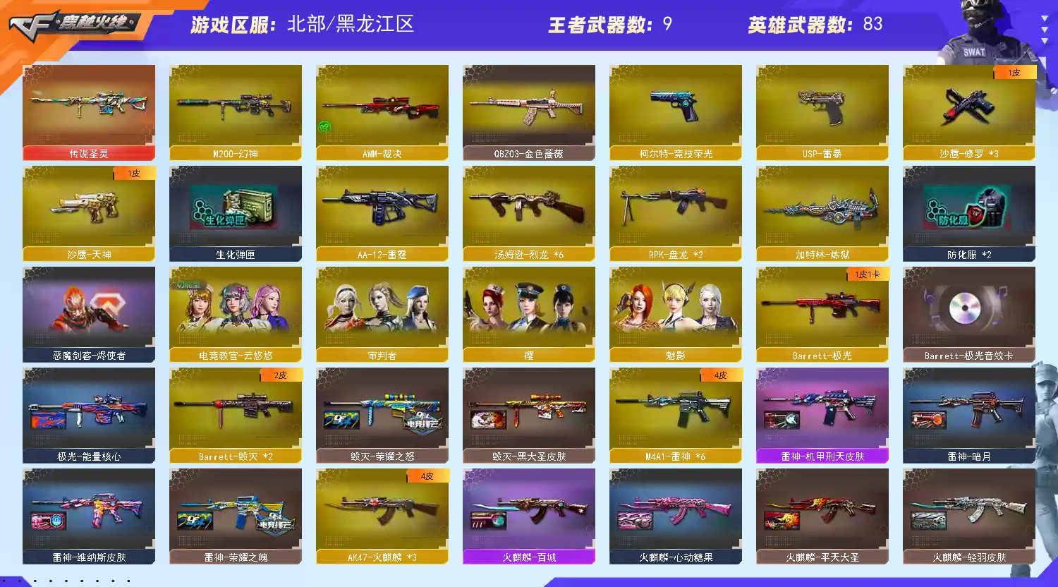 95v8王者3炫金可排位【竞技荣光套/传说圣灵/M200幻神+幻神紫橙光效/M200竞技荣光+柯尔特竞技荣光+擎天竞技荣光/QBZ03-金色蔷薇/6烈龙/2盘龙/炼狱/3修罗/天神/USP-雷暴/1套夜魔雷/4套竞技荣光雷/】【极光音效卡/黑骑士音效卡/】【/雷神-荣耀之魄毁灭-荣耀之怒/黑骑士-白马银枪/雷神-机甲刑天皮肤/火麒麟-百城/屠龙-惊鸿皮肤/雷神-维纳斯皮肤/黑骑士耀金皮肤/火麒麟-心动糖果/极光-能量核心/修罗-能量核心/火麒麟-雷神/天龙-能量核心/雷神-暗月/毁灭-青帝/AK47-B-常胜将军-刘备/天神-暗月/火麒麟-平天大圣/毁灭-黑大圣皮肤/M4A1-千变-孔明皮肤/修罗-CFSTAR/火麒麟-AG战队皮肤/火麒麟-轻羽皮肤/黑骑士-幻能朋克皮肤/AK47-黑武士-361/屠龙-彼岸花皮肤/火麒麟-CFSTAR/天龙-CF STAR/】【四防】电竞教官-云悠悠/审判者/樱/魅影/零.纪元/云海玲珑/】【/QBZ-03-王者蔷薇-觉醒版/王者之魄-觉醒版/王者之力-觉醒版/王者之刺-觉醒版/王者之锋-觉醒版/王者之击-觉醒版/烟雾弹-雷霆王者/炫金武士/炫金黑龙/炫金骑士/神圣爆裂者-末日III/QBZ03-吕布/M37-葵/COP-旗袍/】【烟雾保护头盔宇航月/烟雾保护头盔/闪光护目镜/透明头盔/透明护目镜/超级对讲机/超级背包3-7/虎牙炫彩背包/全能枪王背包/特殊收纳包/全背包/步枪弹匣长时效/永久防弹衣防弹头盔手雷包C4工具钳;USP-雷暴,电竞教官-云悠悠,RPK-盘龙,QBZ03-金色蔷薇,M200-幻神,