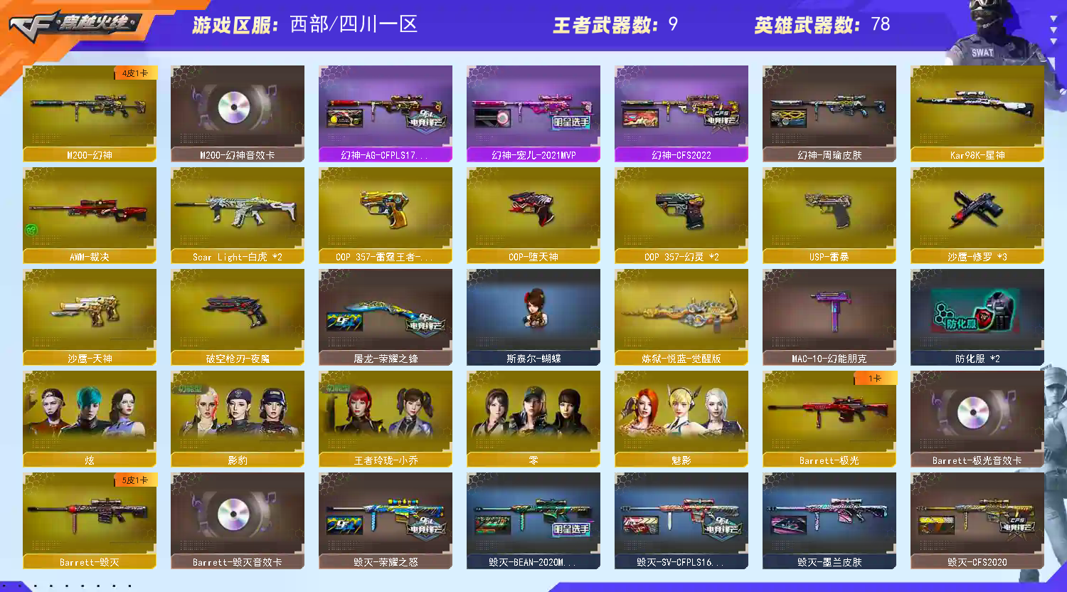 幻神3皮✅幻神宠儿/Ag/cfs+幻神音效卡✅荣耀之魄✅星神✅手枪满配✅usp雷暴✅cop雷霆王者
