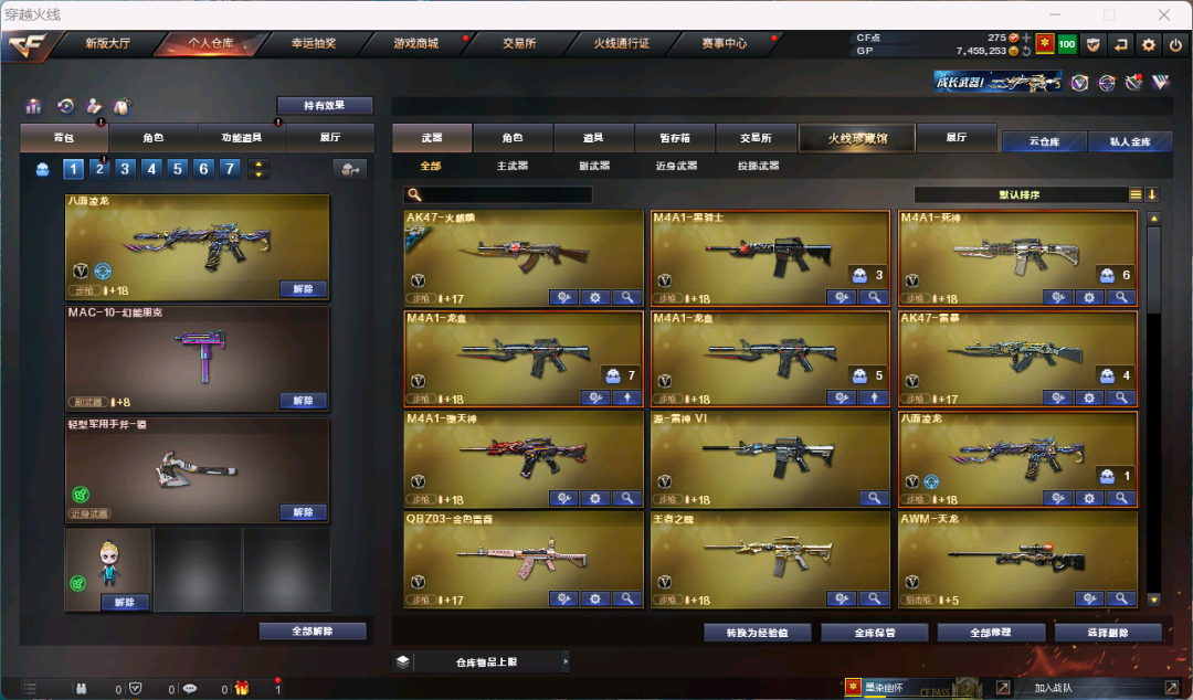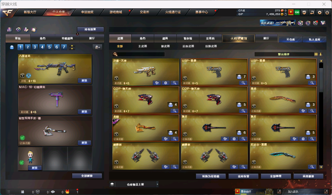禁止开挂 (英雄武器)Barrett-毁灭/Barrett-极光/AWM-天龙/M4A1-堕天神/M4A1-雷神/M4A1-死神/M4A1-龙血(2)/M4A1-黑骑士/王者之魄-觉醒版/AK47-火麒麟/AK47-雷暴/AK-47-猩红传说(3)/AK47-B-战士/QBZ03-金色蔷薇/汤姆逊-烈龙(6)/AA-12-雷霆/加特林-炼狱/COP-堕天神(2)/沙鹰-天神/沙鹰-修罗(2)/USP-雷暴(2)/麒麟刺(2)/麒麟刺-堕天神/龙啸/龙啸-堕天神(2)/擎天(2)/屠龙/雷霆之锋/斩神刀-雷暴/高爆手雷-雷暴(7)/高爆手雷-雷霆(4)/高爆手雷-堕天神(7)/烟雾弹-雷暴(7)/烟雾弹-雷霆(4)/烟雾弹-堕天神(7)/闪光弹-雷暴(7)/闪光弹-雷霆(4)/闪光弹-堕天神(7)/机械迷城-穹宇/八面凌龙 【王者武器】 【小人枪】火麒麟-零·纪元(4)/AWM-灵狐-15周年嘉年华/巴雷特-零-水下丽影(2)/KAC锯式机枪-黑桃战神/斯泰尔-蝴蝶/COP-旗袍 【其他重要武器】炫金毁灭/M4A1-十二生肖·龙-雷神/M4A1-英雄-能量核心/AK47-冰龙粉碎者/激光毁灭者III/AK-103-火线13周年/海浪AK47-浏览器/深海AK47-管家/AK47-SS-9周年/M4CQBR-AP-孔明/M4A1-XS-耀龙/M4A1-Guitar 炫彩(4)/M4A1-电音(3)/AK-12-恶棍/M4A1-樱落/AK47-绚樱/AK47-大帝林肯/9A91-赤血龙魂(2)/AK47-盛典-CFS 2022/AK-47-二次元/M4A1-战龙/M4A1-秘银赤龙/AK47-娜塔莎/AK47-十二生肖-蛇/黄金AK-47/M14EBR-赤血龙魂/HK417-赤血龙魂/M4A1-肯德基/AK-103-红色悦动/HK417-红龙/AK47-破空冰刃/M4A1-十年火线/AK47-狂欢-CFS/AK47-B-十周年/M4A1-PINK/AK47-枪娘/AWM-S/AWM-A/AWM-A-彩虹/M82A1-夏日/巴雷特-绚樱/AWM-银月/雷蛇AWM/M82A1-红龙/Barrett-捣乱兔兔/AWM-Red/M82A1-飞龙在天/AWM-枪娘(2)/AWM-盛典-CFS 2022/Barrett-麟龙/AWM-卡通/巴雷特-情人节2020/M200-赤血龙魂(2)/Barrett-翔龙/AWM-万圣节2019/末日裁决者/巨龙咆哮Ⅲ/KAC-小动物(2)/KAC-赤烛/毒蜂/斯泰尔-巧克力(2)/EVO3A1-火线13周年/生存之眼(2)/EVO III-赤血龙魂(2)/神圣爆裂者III/SPAS-12-雷电核心/COP-青帝/MAC-10-幻能朋克(2)/MAC-10-涂鸦/幻影沙鹰-枪王排位/COP 357-平天大圣/幻影Anaconda-枪王排位/COP-金蝉子-枪王排位/MAC-10-远古神话/愤怒公牛左轮-枪王排位/COP 357--绚樱(2)/蟒蛇-炫彩/真的是手枪/COP357-十二生肖·羊/COP 357-青龙/Colt1911-彩蝶/沙漠之鹰-盛典-CFS 2022/沙鹰-枪王排位(2)/Anaconda-炽焰核心/Anaconda-雷电核心/Cop357-赤龙/新USP-枪王排位奖励/巧克力手杖-饼干情人/虹光女皇利刃-枪王排位/宙斯权杖/收割者-枪王排位/虹光丛林匕首-枪王排位(2)/虹光鹰爪-枪王排位/丛林匕首-卧龙(2)/斩神刀-御龙/丛林匕首-枪王排位/啸天/生化手雷-机甲核心(3)/迷你生化手雷-黑桃战神(9)/胜利奖杯闪光弹-枪王排位/胜利奖杯手雷-枪王排位/生化手雷-小钢/迷你生化手雷(2)/手雷-能量核心/强化版迅捷虫手雷/红色诅咒娃娃;USP-雷暴,晴雅,QBZ03-金色蔷薇,