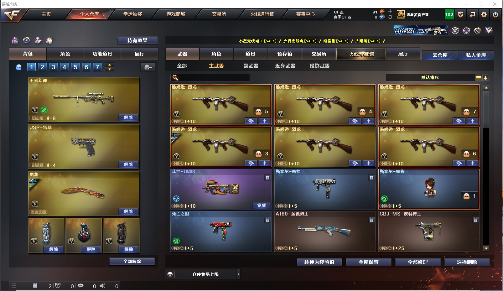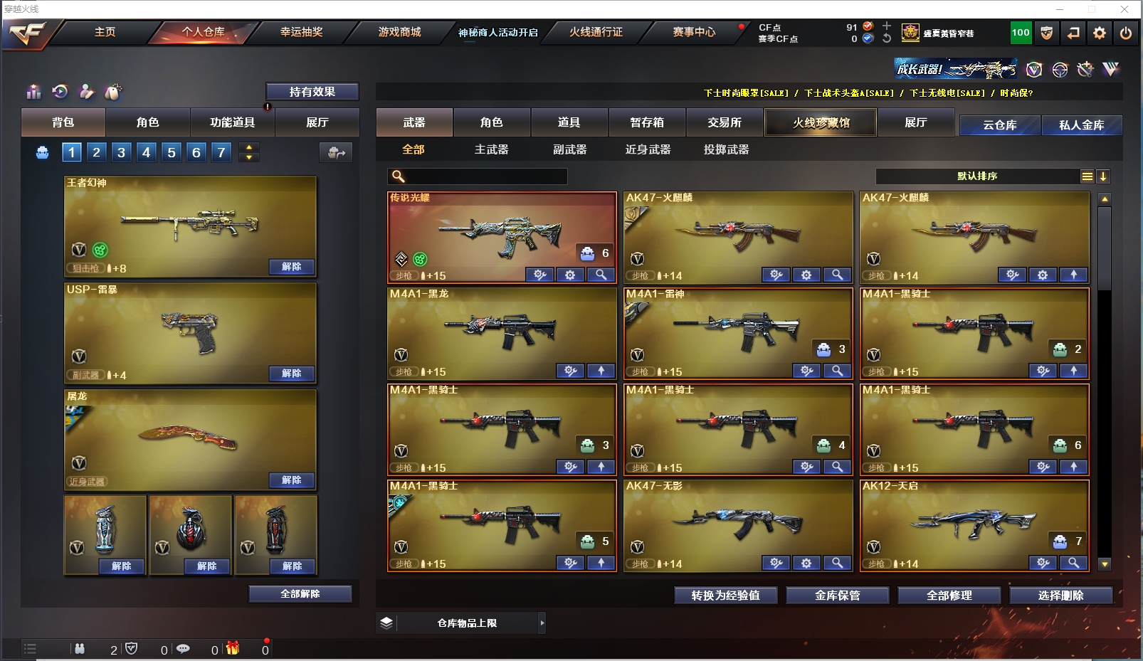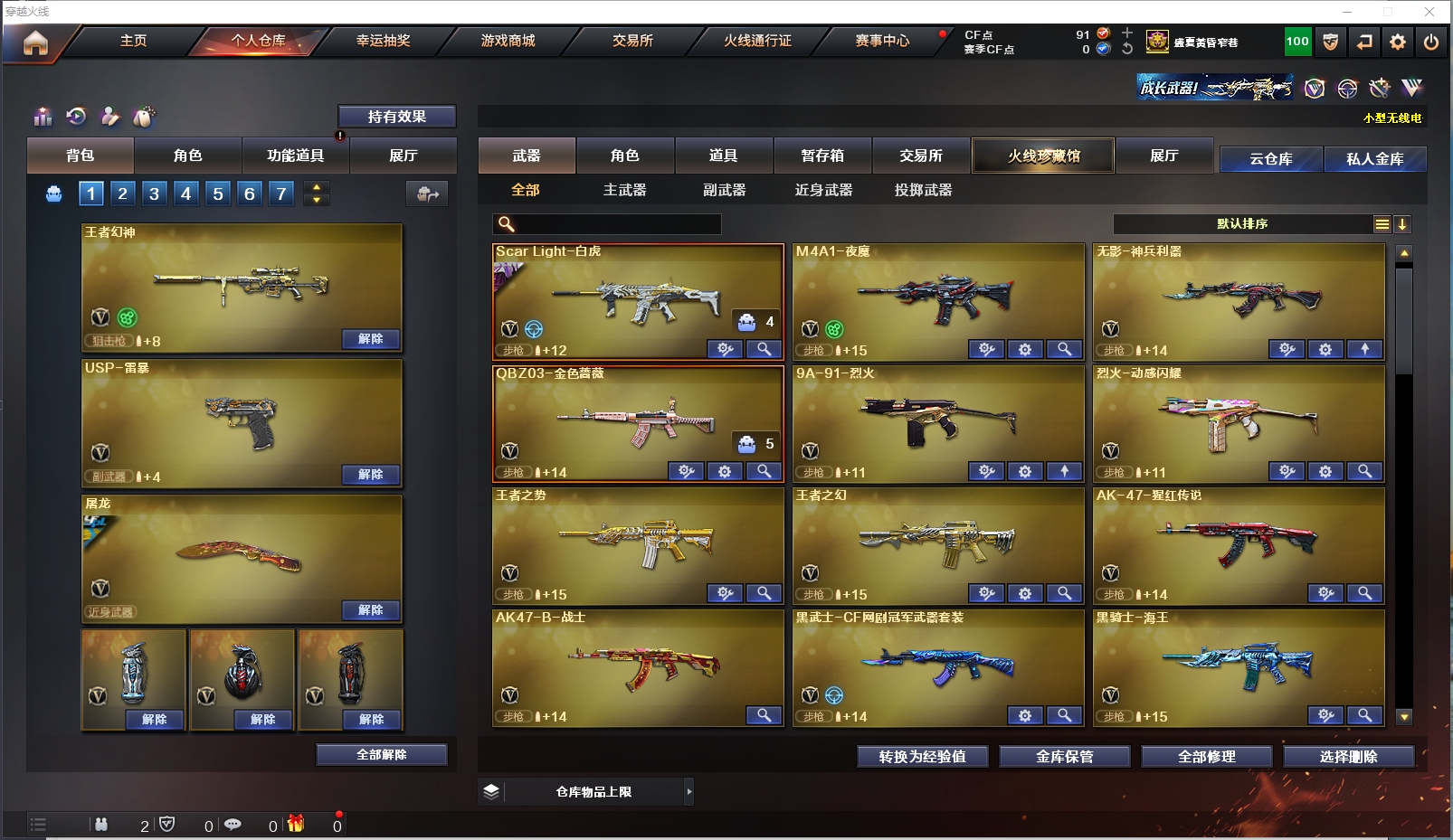 生化性价比✅隼+6烈龙蝴蝶+6盘龙炼狱✅传说光耀+USP雷暴+白虎+QBZ金色蔷薇|夜魔套|全弹匣