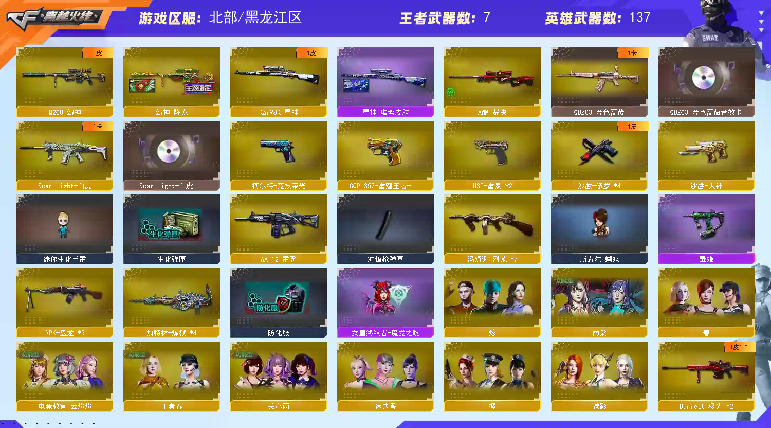 账号很好,欢迎来租 喜欢请收藏 英雄武器】_M200-幻神/M200-竞技荣光/Barrett-毁灭/Barrett-极光(2)/Barrett-朱雀/Kar98K-星神/AWM-天龙/AWM-裁决/M4A1-雷神/M4A1-黑龙/M4A1-龙血(3)/M4A1-黑骑士/黑骑士-海王/M4A1-玫瑰精灵/HK417-朱雀/_Scar Light-白虎/AK47-火麒麟/无影-神兵利器/AK47-雷暴/AK47-黑鲨(2)/AK47-黑武士/AK-47-猩红传说(5)/AK47-B-战士/AK47-B-战神/AN94-超新星/QBZ03-金色蔷薇/王者之心-觉醒版/9A91-烈火(2)/RPK-盘龙(3)/汤姆逊-烈龙(7)/AA-12-雷霆/加特林-炼狱(4)/COP 357-雷霆王者-觉醒版/沙鹰-天神/沙鹰-修罗(4)/柯尔特-竞技荣光/USP-雷暴(2)/麒麟刺-堕天神/龙啸(8)/龙啸-堕天神(2)/王者之啸-觉醒版/擎天(2)/擎天-竞技荣光(4)/屠龙(3)/斩神刀-雷暴/高爆手雷-雷暴(7)/高爆手雷-堕天神(3)/高爆手雷-竞技荣光(8)/烟雾弹-雷暴(7)/烟雾弹-堕天神(3)/烟雾弹-竞技荣光(8)/烟雾弹-雷霆王者-觉醒版/闪光弹-雷暴(7)/闪光弹-堕天神(3)/闪光弹-竞技荣光(9)/闪光弹-雷霆王者-觉醒版/龙啸-烈火龙威 【王者武器】高爆手雷-雷霆王者 【小人枪】火麒麟-灵狐/M4A1-雷神-精英刀锋/AWM-灵狐-15周年嘉年华/裁决-雪莉杨/巴雷特-零-水下丽影/斯泰尔-蝴蝶/迷你深渊冰龙(3)/魔能飞环-曼陀罗/迷你牛牛(4)/生化手雷-机甲核心/深渊终结者手雷(2)/迷你生化手雷 【其他重要武器】炫金火麒麟/M4A1-十二生肖·龙-雷神/黑骑士-摸金校尉/M4A1-仙界-黑骑士/激光毁灭者III-白马银枪/激光毁灭者III/M4A1-秘银赤龙(5)/QBZ03-锋芒破茧/M4A1-S-能量核心/M4A1-S-火种/AK103-神秘黑洞/AK47-雷蛇/M4A1-水枪-机甲核心/AK47-轮回/G3A3-SS-枪王排位(3)/M4A1-紫狱/AK47-丹龙/M4A1枪王排位II(2)/AK-47-二次元(3)/雷神-赛博幻想/AK47-大帝林肯(2)/M4A1-圣诞2021/AK47-牛魔王/雷神-赛博朋克/M4A1-牛魔王/黄金AK-47(2)/AK47-十二生肖-蛇/HK417-红龙/AK47-绚樱/火麒麟-桃园结义/M14EBR-情人节2020/海浪AK47/9A91-蓝色骑士/神罚/雷蛇AWM/M200-WeGame/M82A1-水枪-机甲核心/凤凰之力/M200-神秘黑洞/AWM-A枪王排位II(2)/黄金AWM(2)/M200-青帝/Barrett-怒火大圣/Barrett-牛魔王/AWM-CFS 2020/AWM-A/破天九龙/AWM-十周年/AWM-恶棍-枪王排位/AWM-万圣节刀锋/暗金M200/M200-赤血龙魂/KAC-圣炎切割者III/KAC-小动物/致命乱世-超越Max/EVOIII-萌杀/EVO III-赤血龙魂(3)/神圣爆裂者-末日(3)/试炼破坏者III/神圣爆裂者/征服者-地狱之火 [Lv Max]/Spas-12-幻能朋克/SPAS-12-雷电核心/沙鹰-枪王排位(5)/新USP-枪王排位奖励(6)/沙鹰-雷蛇/愤怒公牛左轮-枪王排位/COP-金蝉子-枪王排位(2)/柯尔特-百城/幻影沙鹰-枪王排位/USP-黑大圣/COP 357-平天大圣/新USP-怒火大圣(2)/幻影Anaconda-枪王排位/修罗-摸金校尉/COP 357--绚樱/COP 357-子鼠/蝴蝶刀-枪王排位/虹光丛林匕首-枪王排位(2)/幻影双斧-枪王排位(2)/啸天/虹光女皇利刃-枪王排位/收割者-枪王排位/斩魔刀-怒火大圣/鹰爪-枪王排位/丛林匕首-卧龙(4)/闪光弹-枪王排位(7)/胜利奖杯烟雾弹-枪王排位(5)/胜利奖杯闪光弹-枪王排位/手雷-能量核心(2) 【重要武器皮肤】幻神-降龙/星神-璀璨皮肤/巴雷特-毁灭-CFPL冠军/毁灭-星空/极光-能量核心/天龙-CFSTAR/火麒麟-CFSTAR/火麒麟-华夏之心/火麒麟-轻羽皮肤/火麒麟-冠军之心/AK47-黑武士-361/AK-47-雷神/雷神-虎将/雷神-耀金皮肤/雷神-暗月/黑骑士-伏羲/黑骑士-少林/黑骑士-暗月/黑龙-能量核心/HK417-朱雀-武当/战神-流金岁月皮肤/战神-紫绶金章皮肤/战神-粉色甜心皮肤/修罗-星空 【重要光效】炼狱-悦蓝金色光效/王者之心金色光效/AK47-黑武士蓝色光效/RPK-盘龙蓝色光效/AK47-火麒麟蓝粉色光效/AK47-黑武士蓝粉色光效/M4A1-雷神蓝粉色光效/M4A1-黑龙蓝粉色光效/Barrett-毁灭绿色光效 【重要音效卡】Barrett-极光音效卡/M4A1-黑骑士音效卡/QBZ03-金色蔷薇音效卡/Scar Light-白虎音效卡/M4A1-雷神音效卡/Barrett-毁灭音效卡/AK47-火麒麟音效卡 【重要戒指】15周年限定戒指/龙眼(死神)/龙眼(鹰)/金蛇戒/银蛇戒/16赛季纪念戒指-枪王耀金/17赛季纪念戒指-耀金/18赛季纪念戒指-耀金/20赛季纪念戒指-耀金/21赛季纪念戒指-耀银(拇指)/22赛季纪念戒指-耀银(拇指)/23赛季纪念戒指-耀银(拇指)/23赛季纪念戒指-耀银(食指) /24赛季纪念戒指-耀铜(食指)/24赛季纪念戒指-耀银(拇指)/25赛季纪念戒指-耀铜(拇指)/26赛季纪念戒指-耀金(拇指) 【拥有重要玩偶】黄金幸运猪猪玩偶;USP-雷暴,电竞教官-云悠悠,RPK-盘龙,QBZ03-金色蔷薇,M200-幻神,Scar Light-白虎,Kar98K-星神,
