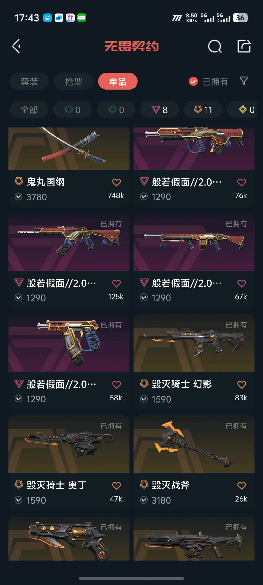 毁灭骑士套|假面2.0套|光荣异象.狂徒|VCT标配|紫阙标配|离子2.0狂徒|