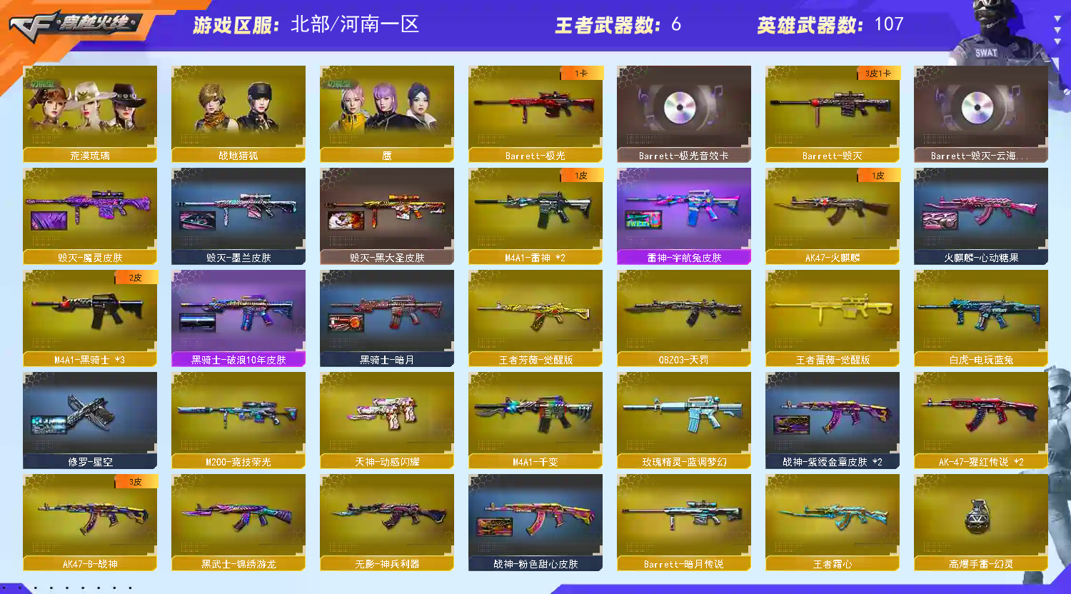 允许打字、、看好描述图片~、无说明就代表无,别用脏东西鼠标宏等违规外设,做个绿色玩家,排位挂机逃跑,撤单的话一律拉黑★爆破生化挑战★擎天柱三级甄选次元套装★四防隼★四防传说艾莉莎★传说夜影★传说辉光★四防电竞教官云悠悠★荒漠琉璃★竞技荣光全套★传说辉光★王者霜心★白虎鹰★6烈龙蝴蝶★6盘龙炼狱小刚★USP雷暴★极光 裁决柯尔特雷神 火麒麟超新星战神 黑骑士★天罚★毁灭 四防女主播语音包火线妹.王者之光★四防晴雅★炽芒蝶刃★千变★唐刀神工天巧★屠龙动感音效卡天神动感音效卡★幻神★王者芳薇★6把致命一击★擎天★毁灭游龙音效卡★蓝粉绿红紫橙金光效斗鱼皮炼狱音效卡★擎天音效卡★流星光效屠龙★双蝴蝶刀★云龙扇★qbz金色蔷薇★四防王者春★三背包全开★星神长生圣莲★真的是手枪、手指枪、6烈龙6盘龙、机械猎手幻灵猎姬、虚空终结者暗域熔岩、终极猎手荒漠刀客、满弹匣、女皇终结者魔龙之吻、钢铁终结者湮灭之柱、圣拳猎手炽雪、;USP-雷暴,炽芒蝶刃,隼,电竞教官-云悠悠,晴雅,传说艾莉莎,RPK-盘龙,