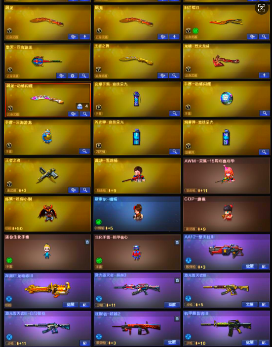 广东一区71V4防传说艾莉莎4防隼传说光耀传说夜影传说灵眸6烈龙6盘龙蝴蝶斯泰尔毒蜂异变清道夫蝴蝶刀炼狱小钢KAC狂怒咆哮白虎裁决竞技荣光168甄选次元套+擎天柱;炽芒蝶刃,隼,传说艾莉莎,RPK-盘龙,传说灵眸,