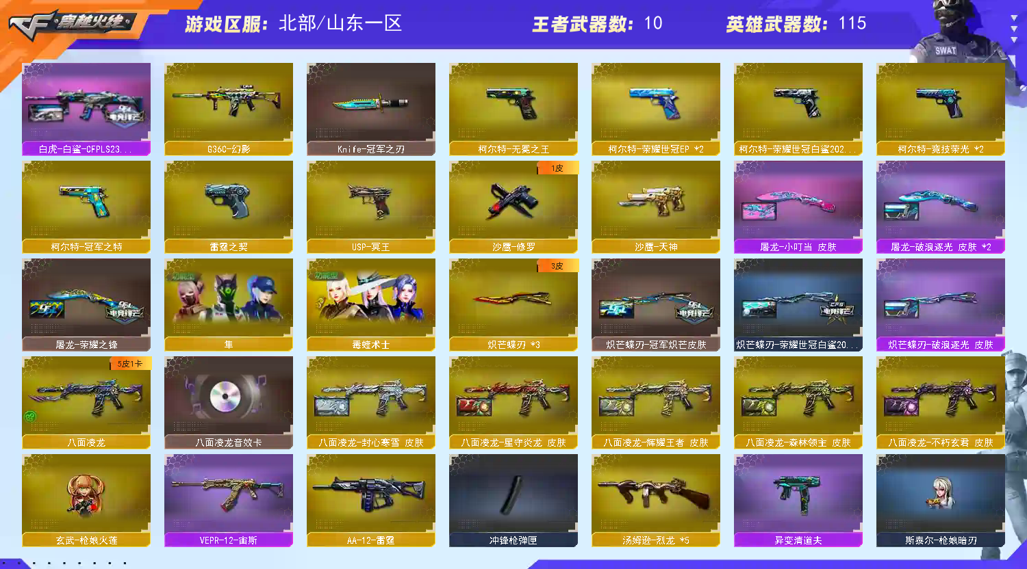 ★收藏好评! 由于异地登录保护机制,部分客户在使用客户端自动上号时会出现密码错误,注意本号密码不会错误,请多尝试5-6次!本账号已经过虚拟财产认定,请各位科技大神高抬贵手。请素质租号,文明游戏,谢谢大家配合!!;柯尔特-无冕之王,柯尔特-荣耀世冠白鲨2023,传说幽冥,柯尔特-冠军之特,炽芒蝶刃,Knife-冠军之刃,传说星骇,