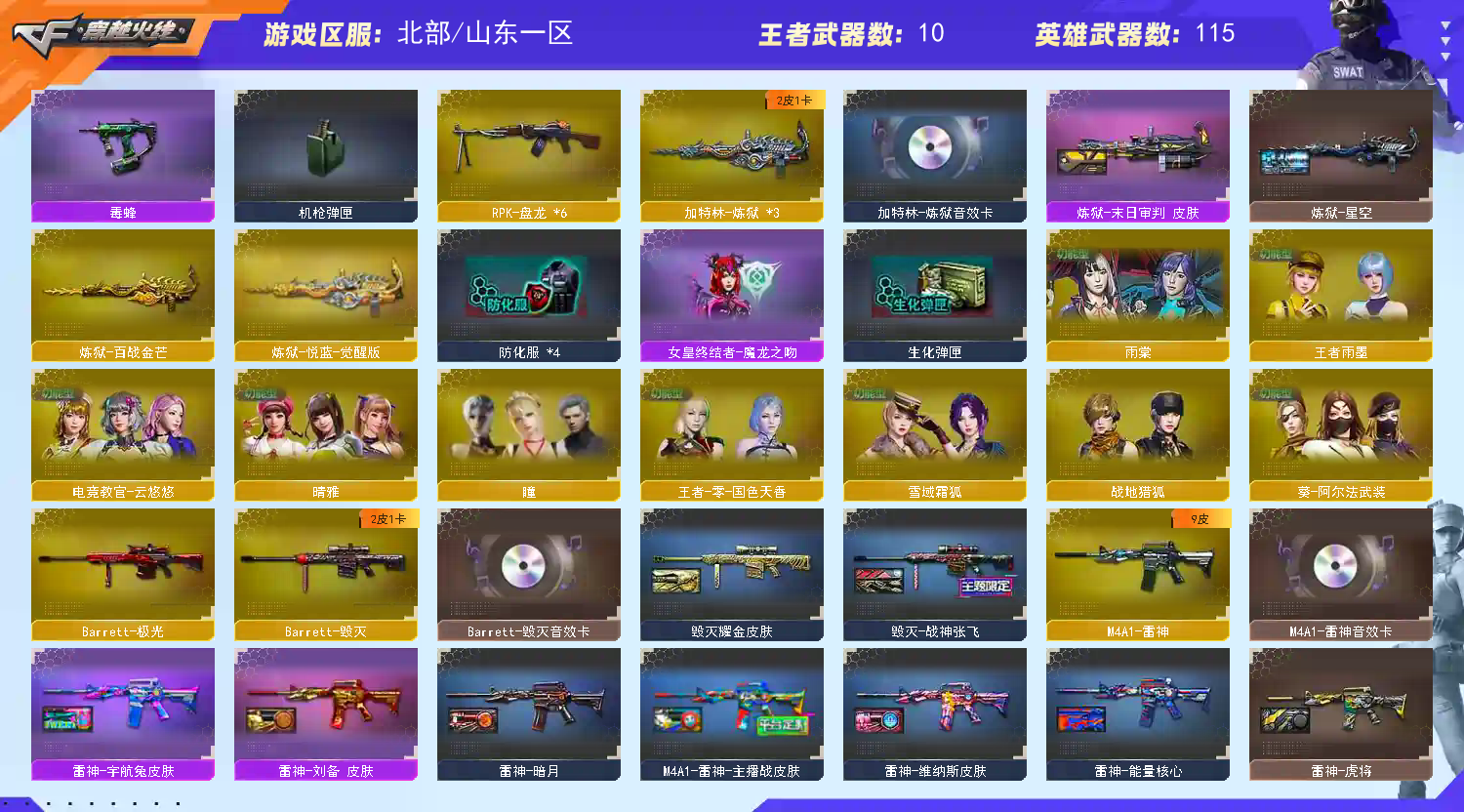 首页 > 租号大厅 > 穿越火线 > 网通区/山东一区 > 【北部】幻神EP星火7皮+音效⭐八面玲珑满皮+音⭐炽芒蝶刃*3炼狱音效卡⭐蔷薇白虎套