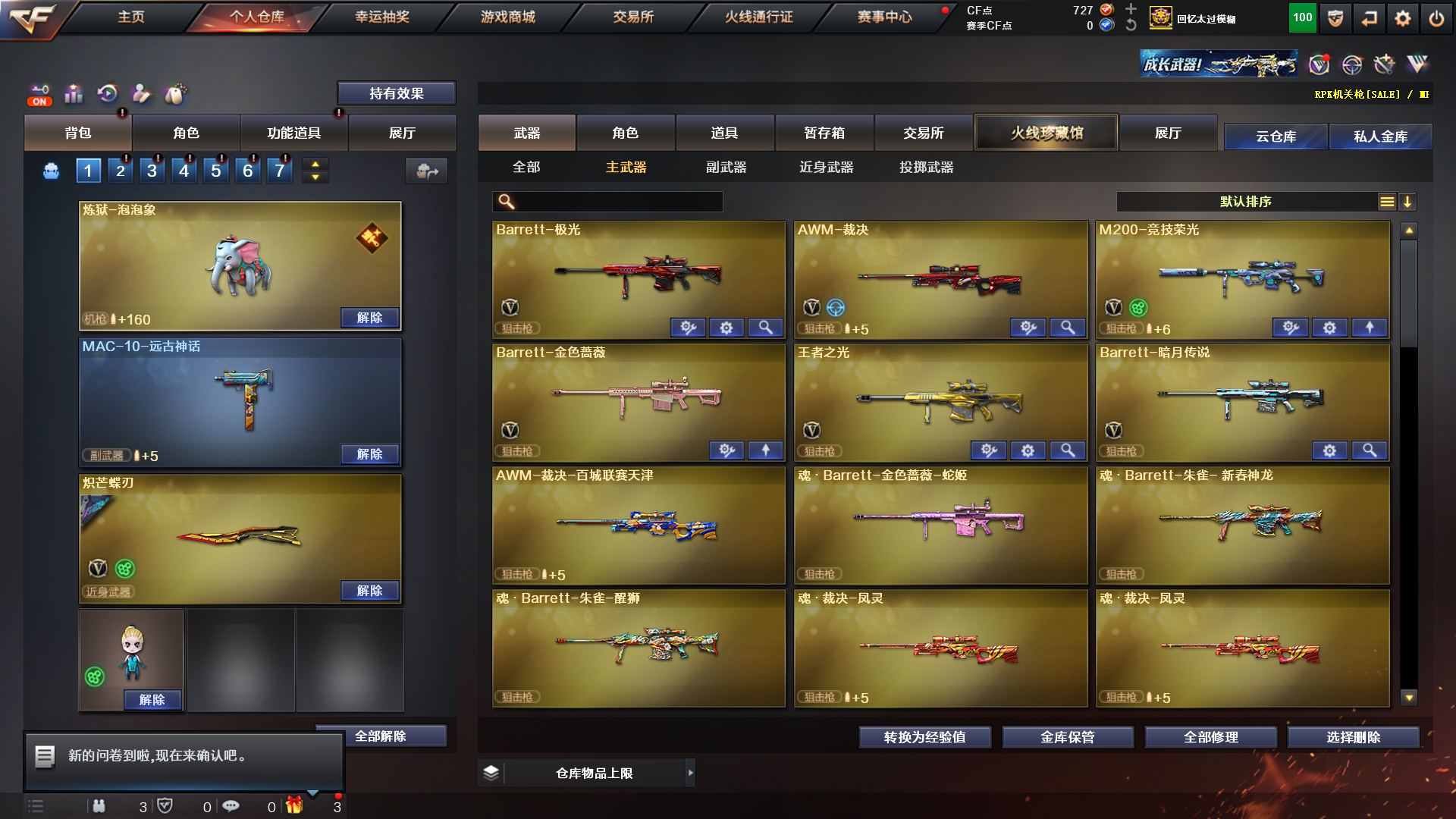 北部顶尖生化双泡泡象(奇幻皮肤)3蝴蝶叨带双皮4防影煞4防隼双蝴蝶斯太尔双异变清道夫VE12宙斯喷子异变镇魔者炼狱众多皮肤生化迷你生化老头7雷全不退包6烈5盘炼狱悦蓝枪娘等)Lv.102荣耀元帅,VIP6,56V,1传说/2王者/0炫金/51英雄//【重要角色9】奇洋探员/蛇隐宗/传说影煞/角色-迷迭香/铁骑荣耀/角色-隼/青霞仙子/角色-空/角色-幽【套装2】竞技荣光套/古蛇迷踪套/【王者武器2】王者之光-觉醒版/炼狱-悦蓝-觉醒版【热门武器27】M200-竞技荣光/异变清道夫*2/斯泰尔-蝴蝶*2/毒蜂/5烈龙/5盘龙/2炼狱/异变镇魔者/3修罗/擎天-竞技荣光/炽芒蝶刃*3/金刚伞-电玩红兔【英雄武器51】AWM-裁决/Barrett-暗月传说/Barrett-极光/M200-竞技荣光/barrett-金色蔷薇/M4A1-雷神/无影-神兵利器/烈火-动感闪耀/白虎-电玩蓝兔/超新星-热带奇洋/金色蔷薇-古蛇迷踪/黑武士-锦绣游龙/汤姆逊-烈龙*5/烈龙-云海游龙/RPK-盘龙*5/加特林-炼狱*2/炼狱-泡泡象/修罗-云海游龙/修罗-古蛇迷踪/天神-动感闪耀/柯尔特-竞技荣光/沙鹰-修罗*3/屠龙/屠龙-动感闪耀/擎天-云海游龙/擎天-竞技荣光/炽芒蝶刃*3/龙啸-热带奇洋/手雷-云海游龙/手雷-动感闪耀/手雷-热带奇洋/烟雾弹-竞技荣光*2/闪光弹-竞技荣光*2/高爆手雷-幻灵/高爆手雷-竞技荣光*2【热门皮肤9】毁灭-暗月/火麒麟-平天大圣/火麒麟-CFSTAR/炼狱-星空/修罗-CFSTAR/屠龙-春桃/炽芒蝶刃-破浪逐光*2/幻神-星耀【人偶武器21】AWM-灵狐-15周年嘉年华*2/斯泰尔-蝴蝶*2/炼狱-枪娘掣电/炼狱-泡泡象/夺魂/迷你曼提柯尔/迷你波特博士*2/迷你火种*2/黄金迷你深渊冰龙/深渊终结者手雷*2/生化手雷-机甲核心*2/迷你生化手雷*4【暴走生化武器17】双面神/异变清道夫*2/斯泰尔-蝴蝶*2/毒蜂/汤姆逊-烈龙*5/RPK-盘龙*5/黑龙吞噬者【挑战武器14】冰龙粉碎者-白马银枪/机甲撕裂者III/激光毁灭者-超越2/集束激光-超越MAX/巨龙咆哮-深渊金/AA12-擎天柱III*2/VEPR-12-金魔/征服者-超越觉醒[Lv2]*3/神圣爆裂者-末日III/试炼破坏者III/阐释者III【音效卡武器2】加特林-炼狱音效卡/加特林-炼狱音效卡【普通皮肤7】雷神-化蛇/屠龙-破浪逐光/AK47-B-常胜将军-曹操*2/战神-粉色甜心/战神-流金岁月/战神-紫绶金章【光效3】王者之魂金色光效/龙啸-毒液光效/ScarLight-白虎紫色光效【玩偶20】波特博士玩偶饰品_红色/红色曼提柯尔玩偶/魅影玩偶/幸运牛仔玩偶/蛇隐宗玩偶/云螭玩偶/孙悟空玩偶/小丑玩偶/幸运牛仔玩偶/火麒麟玩偶/曼陀罗玩偶/机械英雄玩偶/王者刀锋玩偶/天使灵狐玩偶/天使灵狐玩偶/次元之矛-黄金迷你玩偶/15周年玩偶/金色曼提柯尔玩偶/红色艾比玩偶/裂空之翼红色玩偶【戒指武器3】真龙戒/8周年戒2/15周年限定戒指【背包19】古蛇迷踪炫彩背包/钻石wangba背包/EP战队炫彩背包/CFS限定背包/老虎背包/战术背包/奇洋探员-海龟背包/大圣背包/热带奇洋炫彩背包/超级背包/迷彩背包/云海游龙炫彩背包/冰火背包/魔花研究所背包/[属性卡]生化背包变更(生化模式)/迪斯科炫彩背包/虎牙炫彩背包/能量背包-/超能女侍背包【击杀图标16】排位29赛季击杀图标1/黑桃战神击杀图标/风火哪吒-击杀图标/古蛇迷踪击杀图标/EP战队击杀图标/热带奇洋击杀图标/击杀图标-16周年限定/CF通行证第1赛季加载击杀图标1/牛年击杀图标/SN战队击杀图标/云海游龙击杀图标/击杀图标-15周年/动感闪耀击杀图标/15周年限定击杀图标/排位23赛季击杀图标1/电玩兔兔击杀图标【官方截图】;炽芒蝶刃,传说影煞,隼,RPK-盘龙,炼狱-泡泡象,