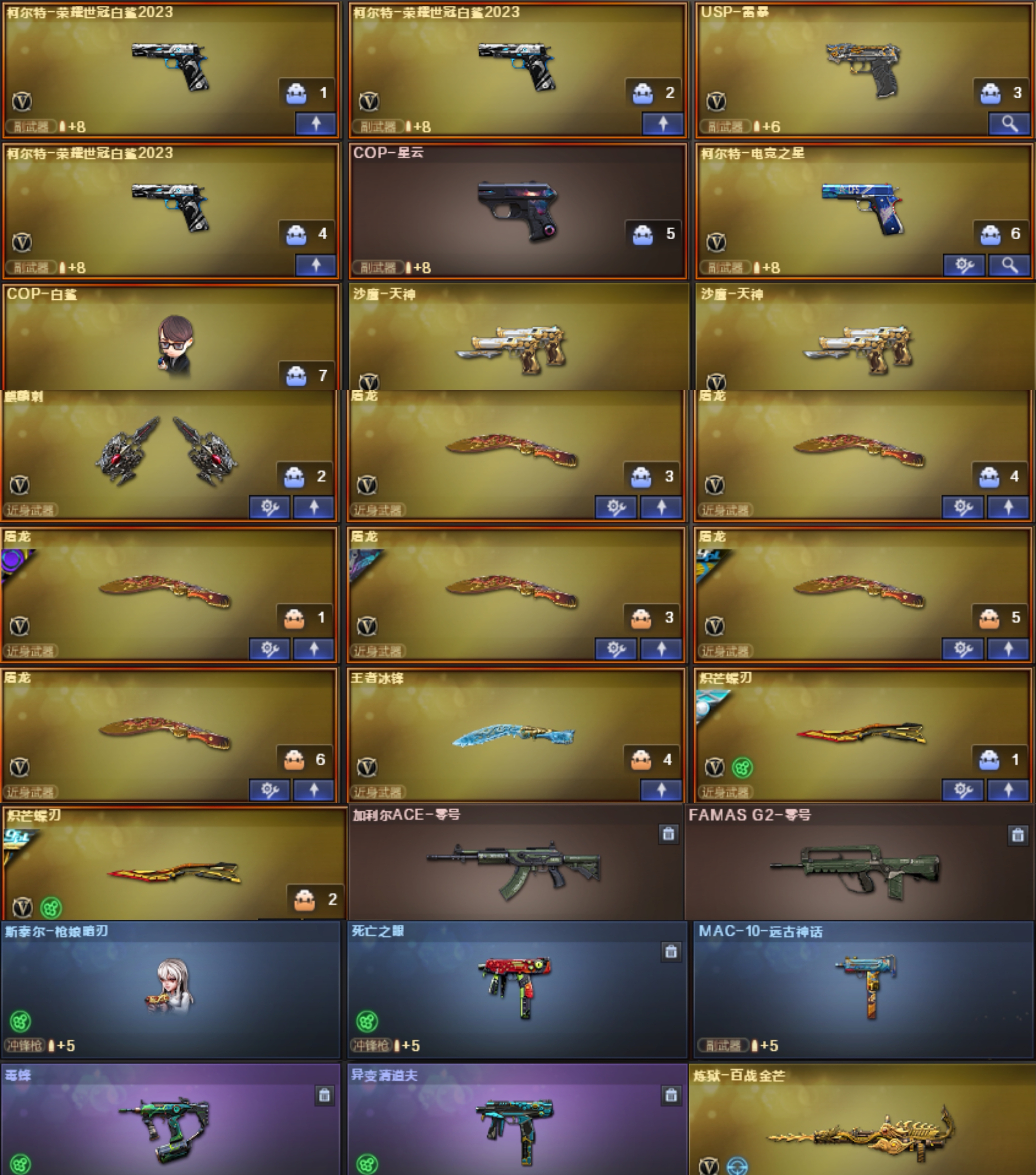 感谢您的租用,祝您生活愉快,万事如意!★★★本号已备案,充值过数万元,因开挂,宏,第三方等导致封号一律报警并法院起诉,配合平台调取实名,支付账号,ip地址,绝对绝对必追究到底。根据《民法典》第113条和第127条规定,原价赔偿,请老板们勿以身试险哦 毒蝰术士和云悠悠都是4防,3白鲨冠军柯尔特 1雷暴 1电竞柯尔特 各种弹匣都有 传说圣谕 电玩蓝兔 两蝴蝶刀带皮,八面凌龙,6烈龙枪娘小人枪 毒蜂 异变清道夫 王者玄武 王者qbz蔷薇 传说幽瞳 双幻神4皮:2023白鲨 欧欧 CF2022 纸灯龙 星神2皮+音效卡:璀璨和傲竹金蛇皮 裁决三皮+音效卡:流光皮 羽摯皮 胜者为王皮 雷神:荣耀 N9皮;USP-雷暴,柯尔特-荣耀世冠白鲨2023,炽芒蝶刃,电竞教官-云悠悠,传说幽瞳,G36C-幻影,M200-幻神,