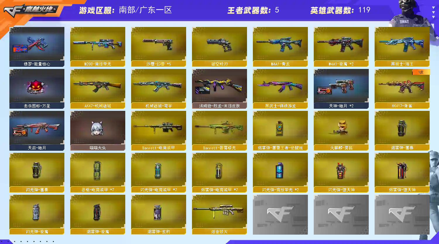 • 游戏区服:穿越火线 / 电信区 / 广东一区