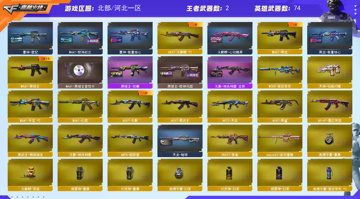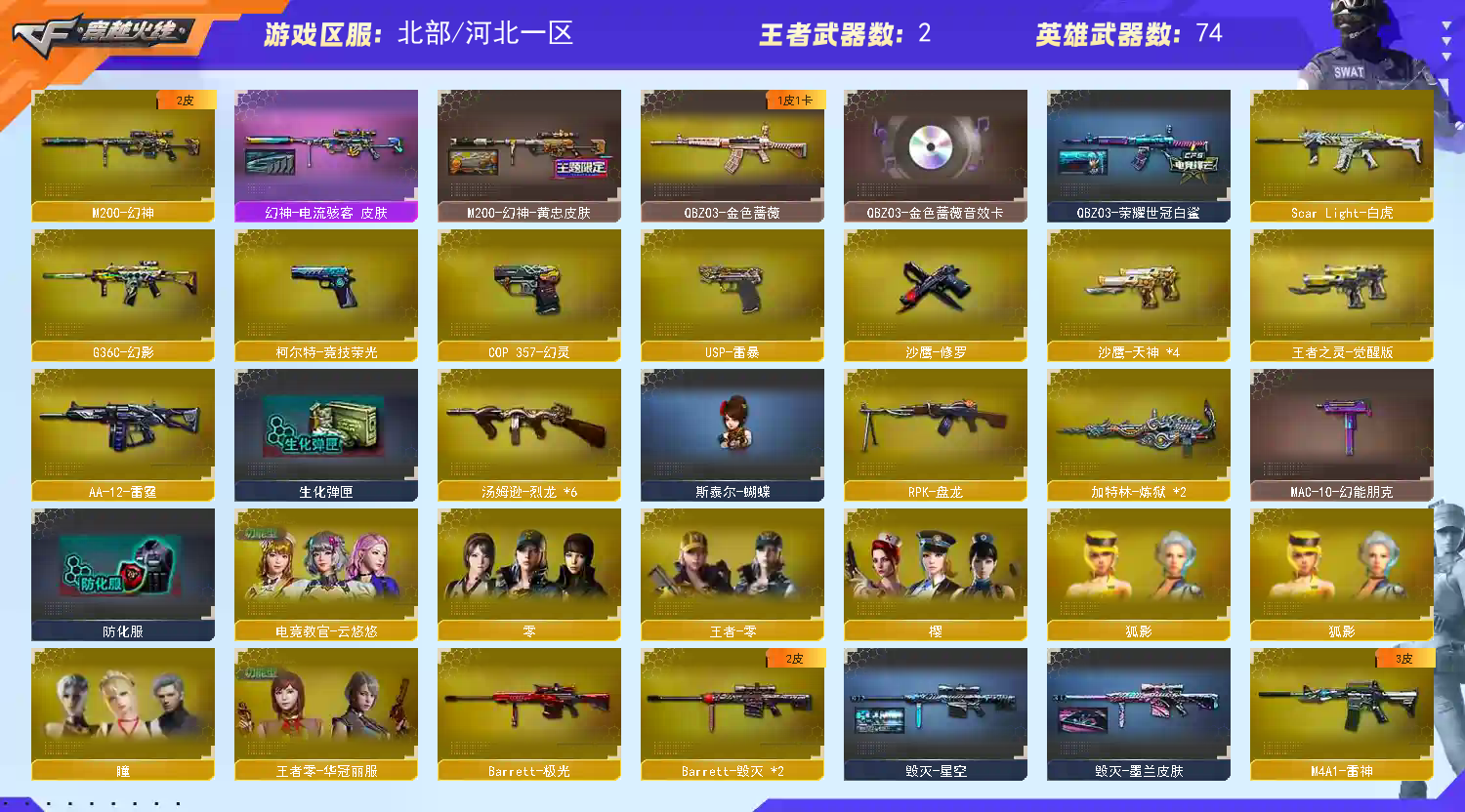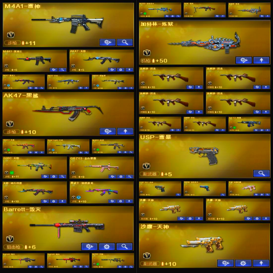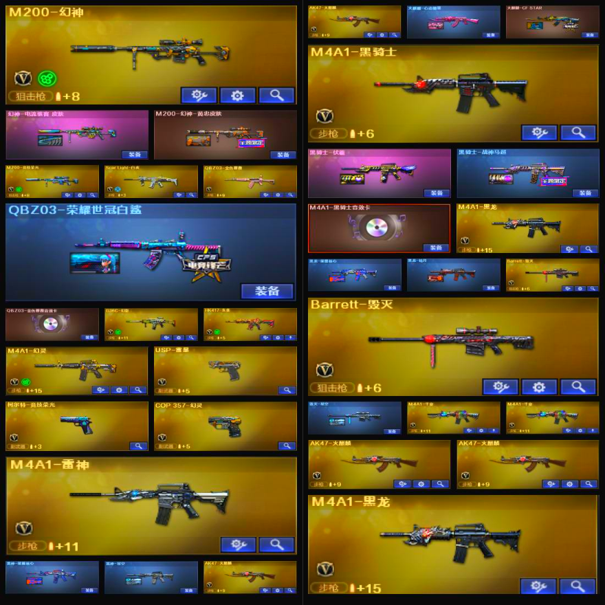 M200-幻神+电流+黄忠/云悠悠/6烈+蝴蝶/白虎+朱雀+QBZ蔷薇带卡+G36幻影