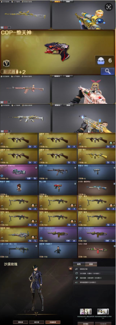 极品爆破生化挑战 王者星神+堕天神cop+qbz+白虎+六列蝴蝶+六盘炼狱生化角色沙漠玫瑰+满雷+全基础v等细节看图;沙漠玫瑰,RPK-盘龙,QBZ03-金色蔷薇,Scar Light-白虎,