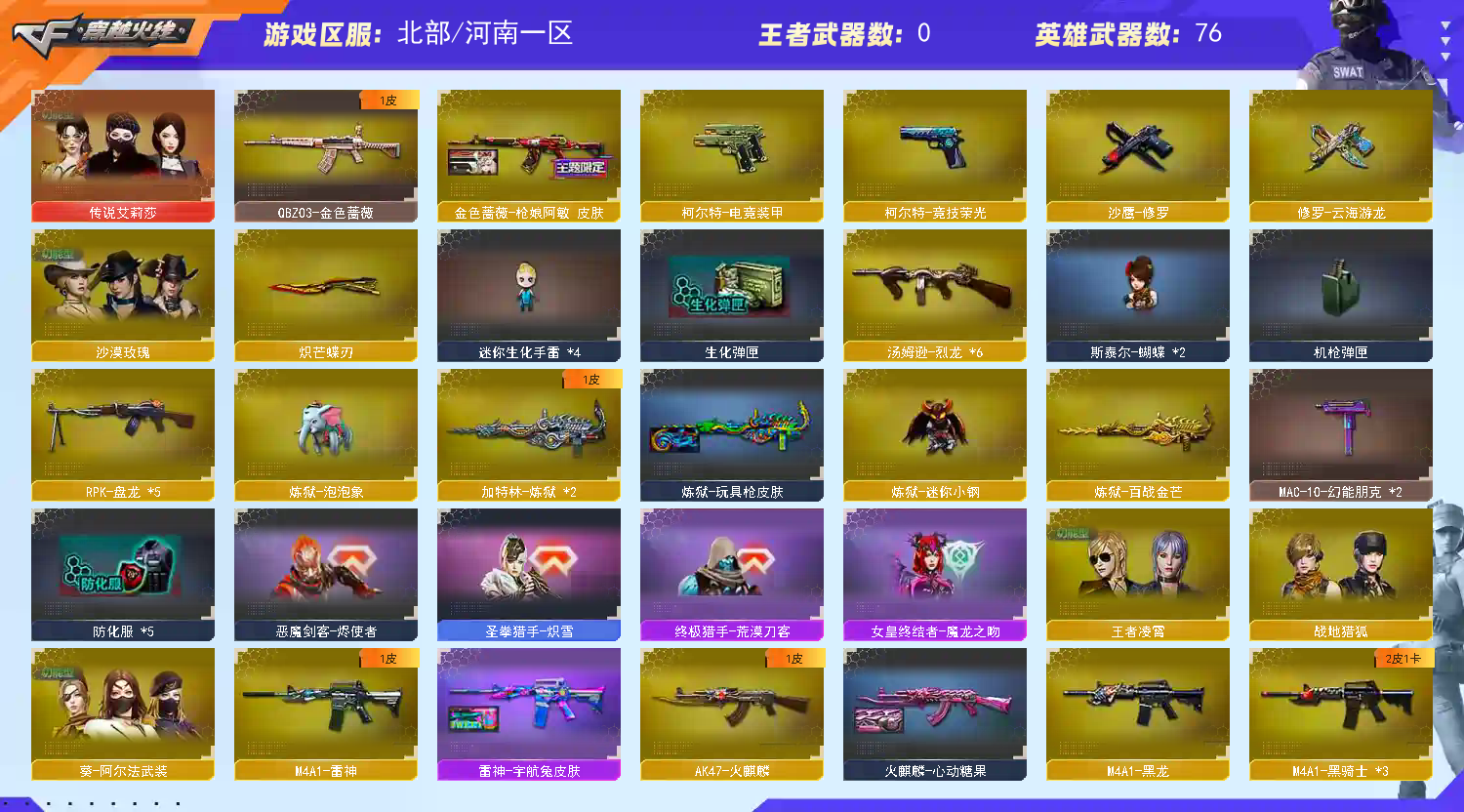 首页 > 租号大厅 > 穿越火线 > 网通区/河南一区 > 沙漠玫瑰6盘6烈炽芒蝶刃♥泡泡象斯泰尔蝴蝶♥竞技荣光电玩白虎♥可爆破可生化