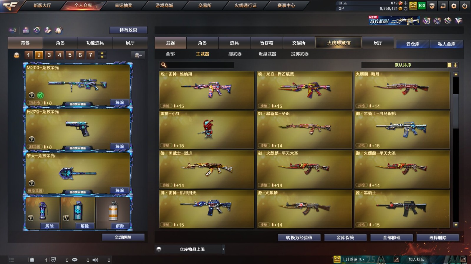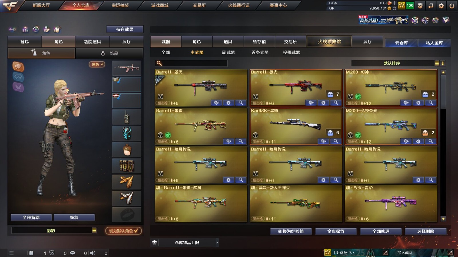 主打一个爆破,除主流武器幻神、星神、QBZ03-金色蔷薇及白虎-电玩蓝图外,还有6烈龙,幻灵套,堕天神套,竞技荣光套及各类音效卡。价格美丽,童叟无欺,良心品质!后续还会持续更新武器,欢迎喜欢的CFER们收藏!;QBZ03-金色蔷薇,M200-幻神,Kar98K-星神,