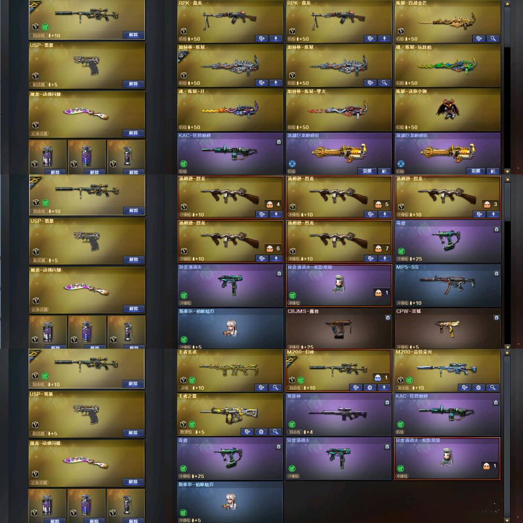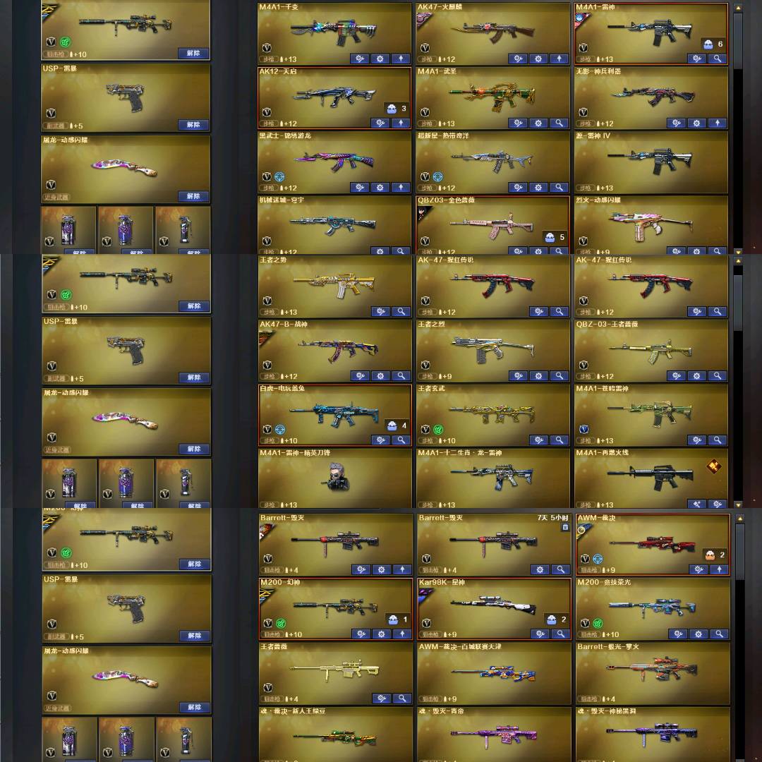 4防悠悠关小雨隼炽芒蝶刃/竞技荣光裁决音效卡幻神周瑜星神/白虎蔷薇玄武雷暴雷霆王者/2盘6烈蛇影双骄清道夫枪娘暗刃毒蜂双面神炼狱小钢手斧镜猎手皮;USP-雷暴,炽芒蝶刃,隼,电竞教官-云悠悠,RPK-盘龙,QBZ03-金色蔷薇,M200-幻神,