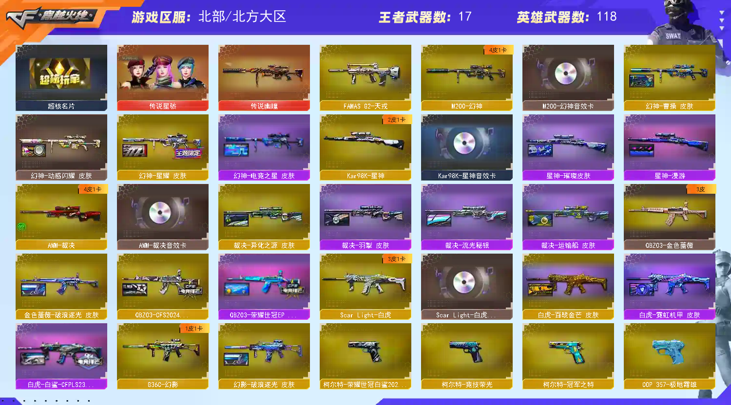 首页 > 租号大厅 > 穿越火线 > 网通区/北方大区 > 传说星骇幽瞳❤️幻神四皮+幻卡❤️超多玩具枪❤️天戎冥王白鲨雷暴蝴蝶冠特银翼炽芒蝶刃❤️15音效卡