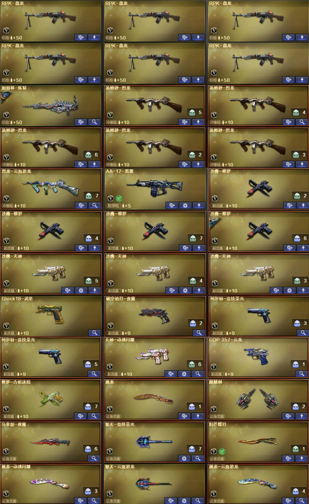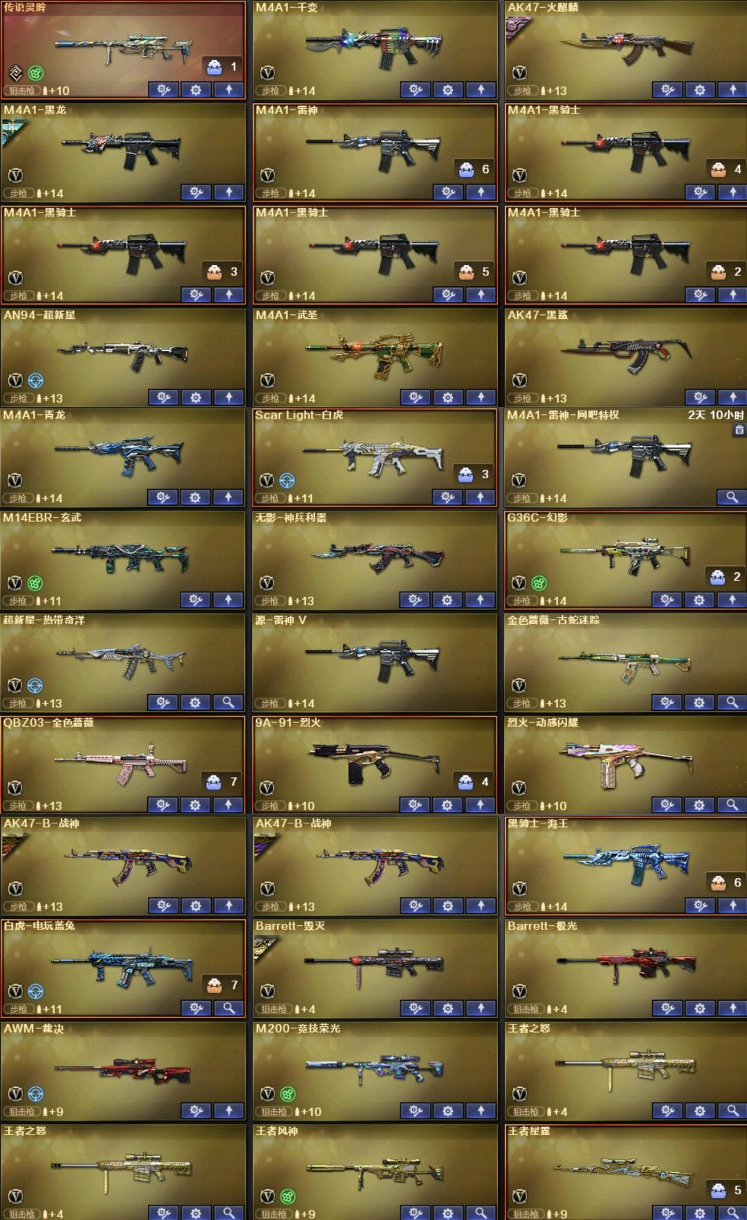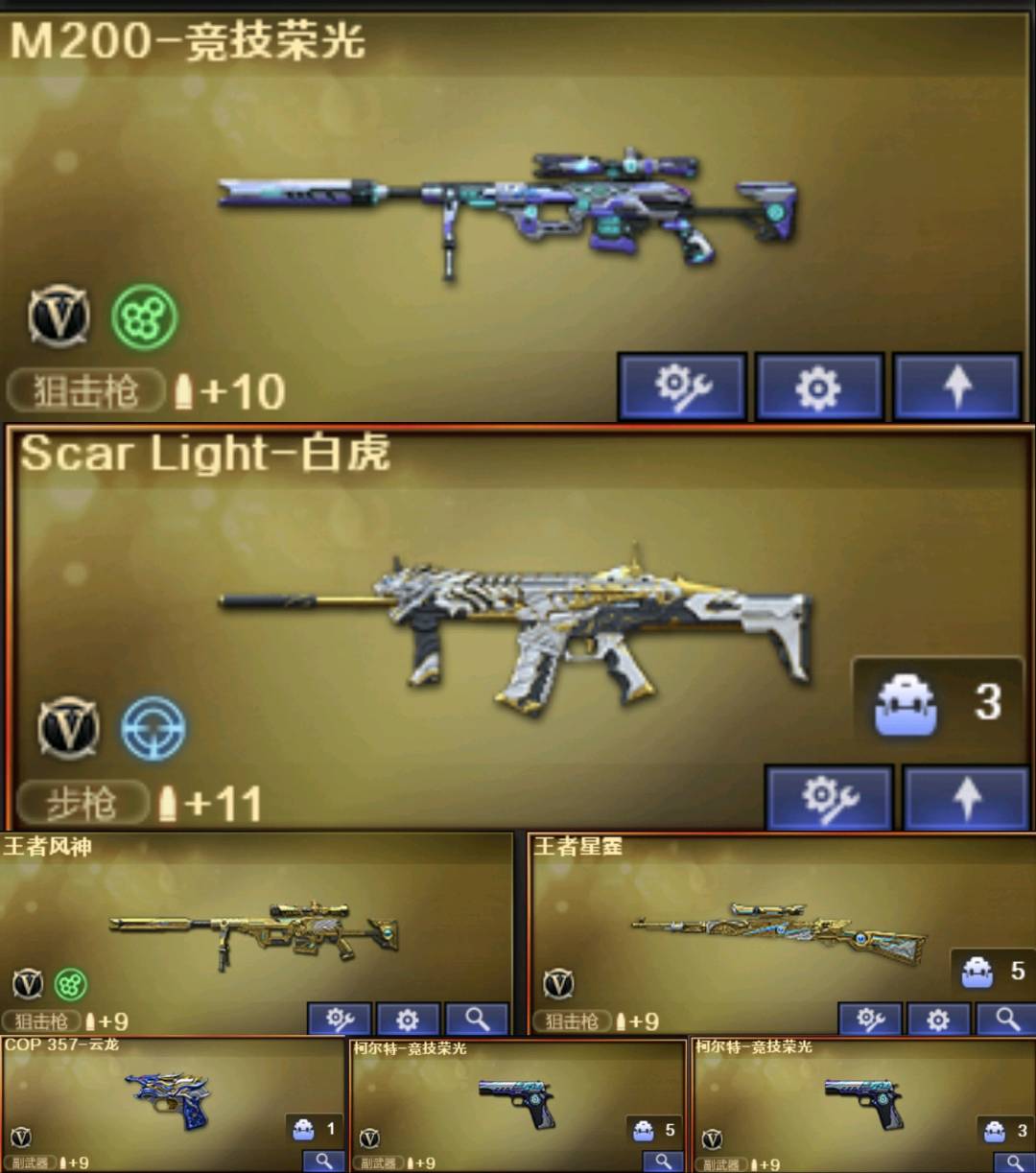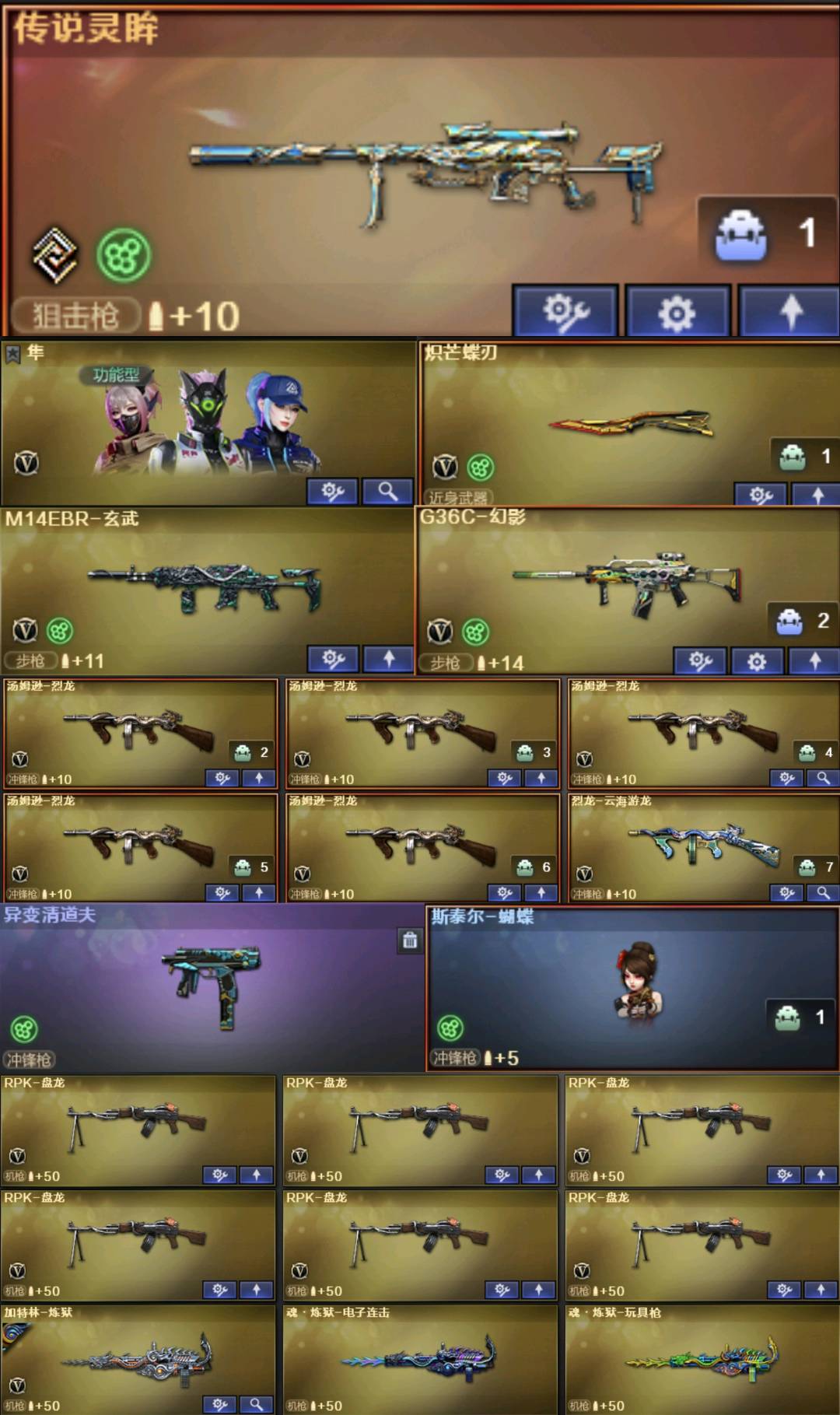 G36C幻影;炽芒蝶刃,传说星骇,隼,电竞教官-云悠悠,晴雅,RPK-盘龙,QBZ03-金色蔷薇,