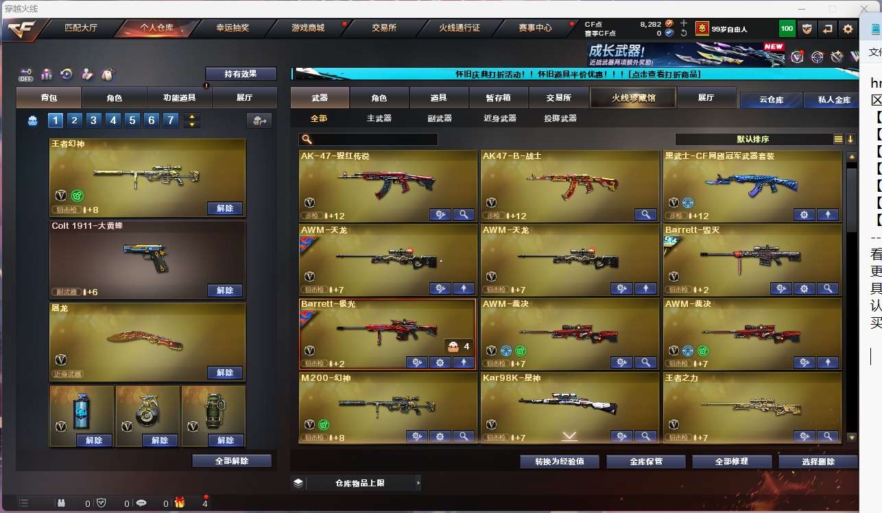 首页 > 租号大厅 > 穿越火线 > 电信区/广东一区 > 南部❤【m200幻神】【98k星神】【王者幻神 】【qbz金色蔷薇】【hk417朱雀】【火麒麟】【黑