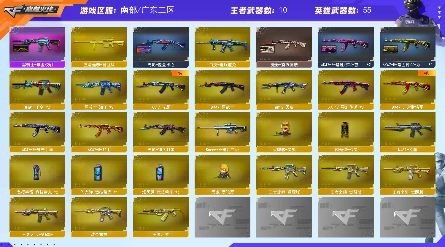 首页 > 租号大厅 > 穿越火线 > 电信区/广东二区 > 【南.部】双全装♥幻神新AG三件套毁灭冠军三件套♥职业经理USP雷暴♥白虎电玩蓝兔竞技荣光云悠悠六烈
