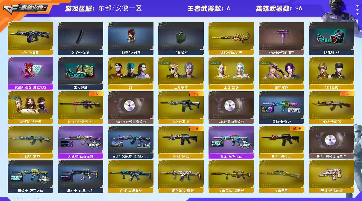 传说星骇幽瞳/冥王9副手幻神星火白鲨音卡星神冠军带卡裁决三件套G36幻影QBZ银翼白虎之魄传说星骇幽瞳/冥王9副手幻神星火白鲨音卡星神冠军枪娘带卡裁决三件套G36幻影QBZ银翼白虎之魄(请不要开挂,坐挂车,封号必究,祝您游戏愉快);USP-雷暴,柯尔特-无冕之王,柯尔特-荣耀世冠白鲨2023,炽芒蝶刃,传说星骇,QBZ03-金色蔷薇,传说幽瞳,