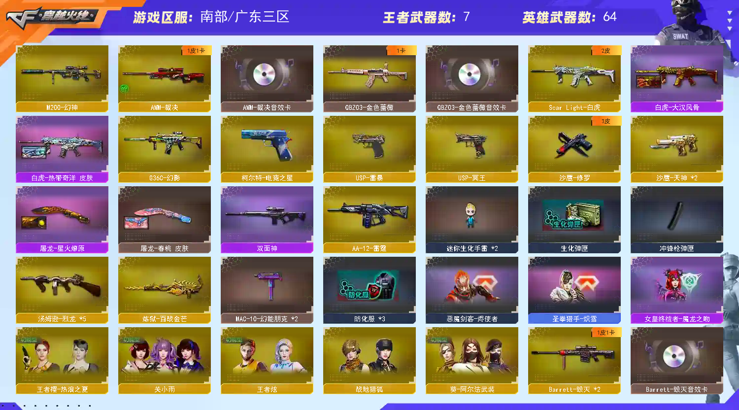 • 游戏区服:穿越火线 / 南部 / 广东三区