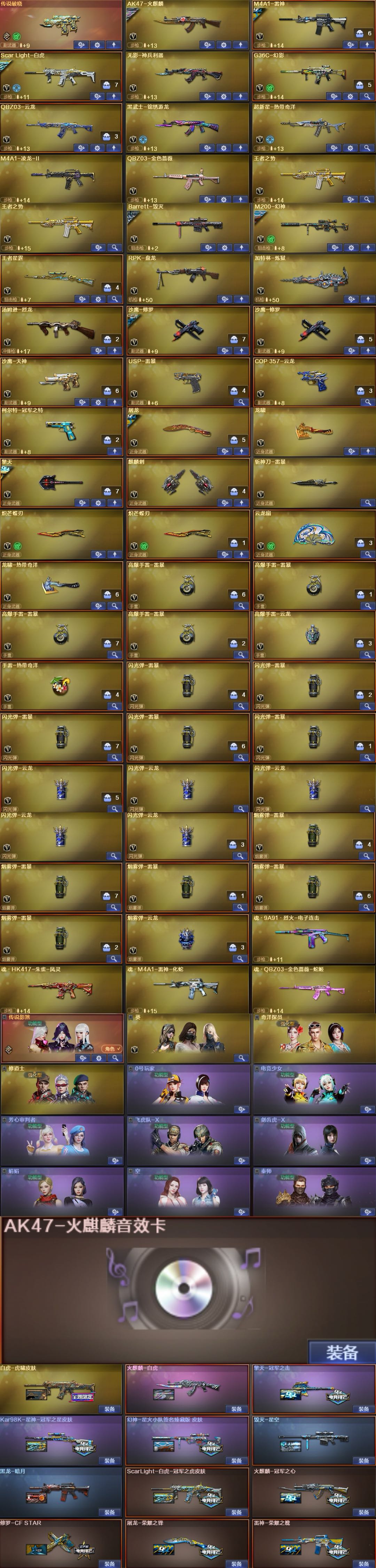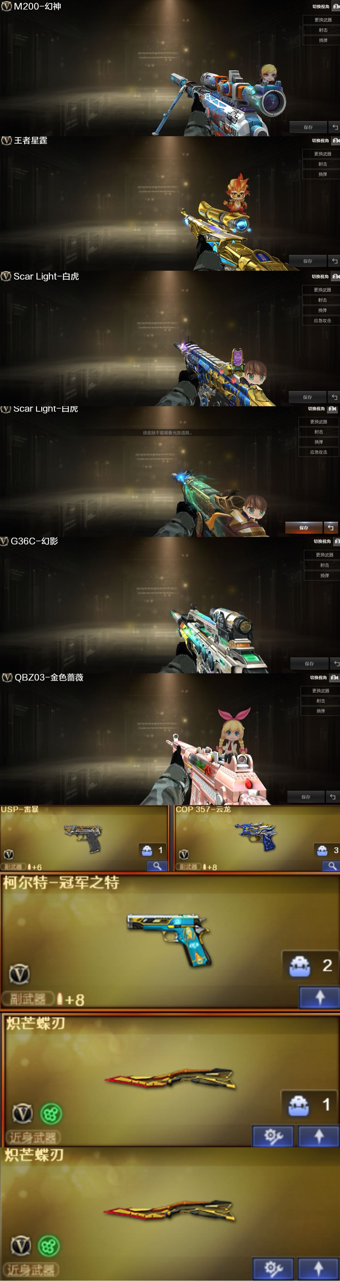 极品爆破号传说影煞/幻神星火/冠军之刃/幻影/白虎双3把副武器/云龙套/斯太尔蝴蝶/小火龙/蝴蝶刀;USP-雷暴,柯尔特-冠军之特,炽芒蝶刃,Knife-冠军之刃,传说影煞,RPK-盘龙,QBZ03-金色蔷薇,