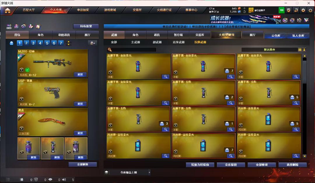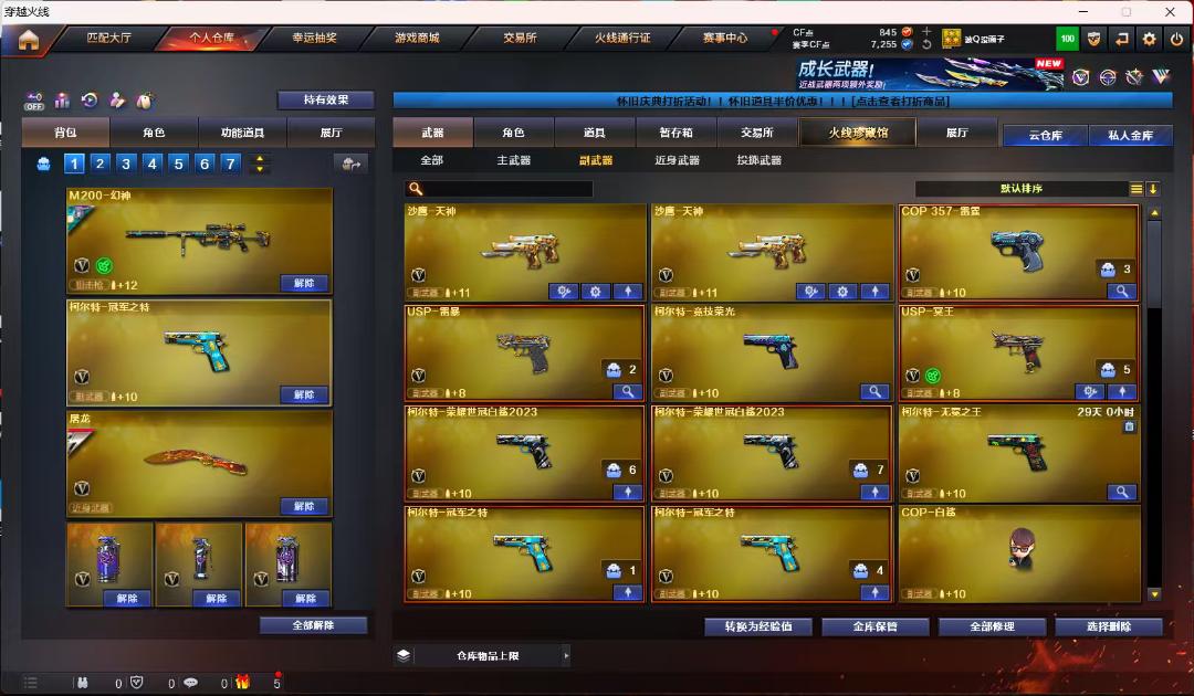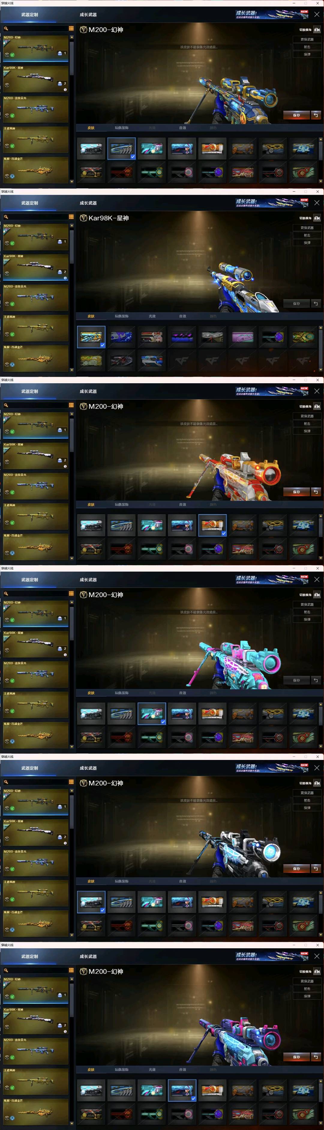 请勿退赛谢谢合作;USP-雷暴,柯尔特-荣耀世冠白鲨2023,柯尔特-冠军之特,电竞教官-云悠悠,QBZ03-金色蔷薇,G36C-幻影,M200-幻神,