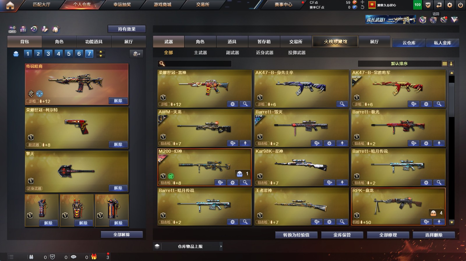 传说暗裔🔥幻神带2022皮肤🔥星神王者星神白虎带卡QBZ🔥热门副手🔥;荣耀世冠-柯尔特,RPK-盘龙,QBZ03-金色蔷薇,M200-幻神,Scar Light-白虎,Kar98K-星神,传说暗裔,