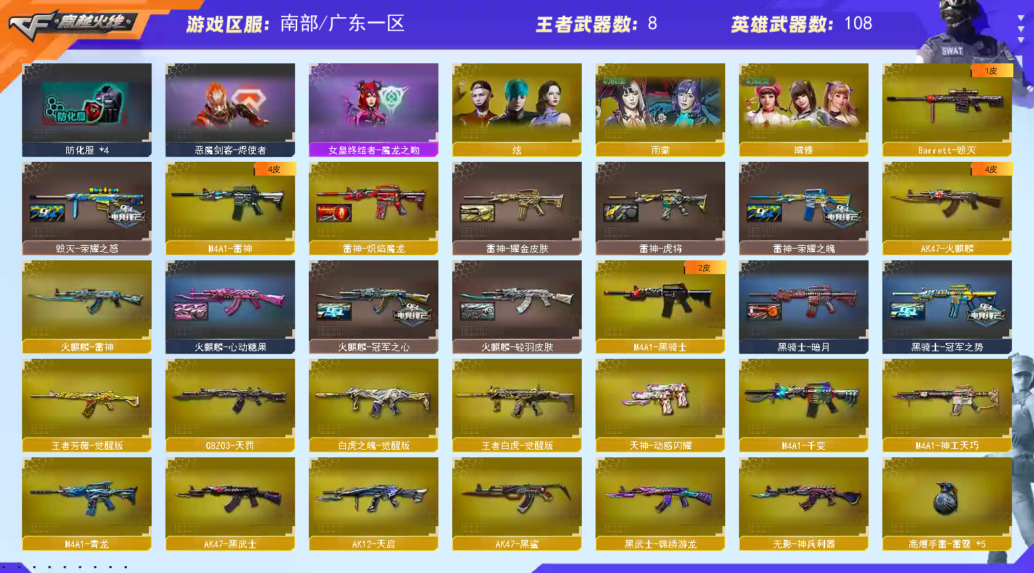 • 游戏区服:穿越火线 / 电信区 / 广东一区