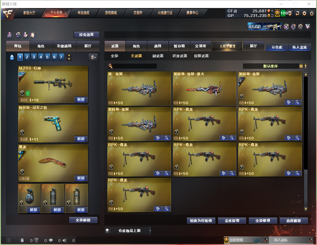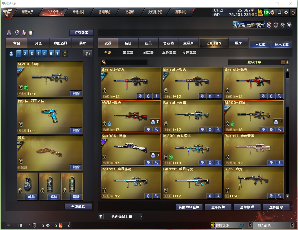 福建一区、幻神+幻神宠儿皮肤、幻神N9皮肤、幻神星火小队皮肤、幻神音效卡、传说艾丽莎、传说灵眸、星神+巅峰荣耀皮肤、6盘龙+2炼狱、7烈龙+毒蜂+清道夫+炽火炎龙、USP雷暴、COP357雷霆、冠军之特、QBZ03金色蔷薇、 生化全装+减少停顿道具、雷神宠儿皮肤、雷神N9皮肤、;USP-雷暴,柯尔特-冠军之特,Knife-冠军之刃,电竞教官-云悠悠,传说艾莉莎,RPK-盘龙,QBZ03-金色蔷薇,