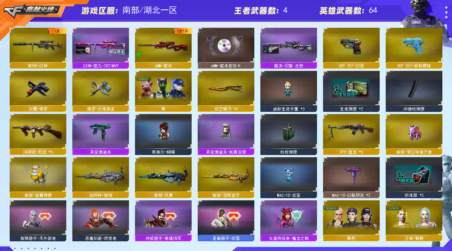 • 游戏区服:穿越火线 / 电信区 / 湖北一区