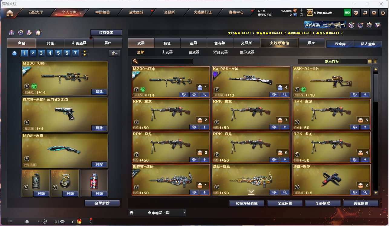 四防传说艾莉莎 四防传说影煞】【m200幻神+音效卡+荣耀世冠白鲨+曹操+星耀】【98k星神+音效卡+巅峰荣耀】【6盘龙 炼狱+卡 炽芒蝶刃+荣耀世冠白鲨2023】【传说夜影】【scar白虎】【qbz金色蔷薇+卡】【hk417朱雀】【火麒麟】【雷神+航星+s18冠军】【毁灭+卡+冠军之怒+sv16冠军】【裁决】 【武器:白虎之魄 金蚀】 【5手呛:修罗*3 天神 柯尔特荣耀世冠白鲨】 【8刀具:屠龙 尼泊尔雷霆 斩神刀雷暴 神工天巧 王者云击】 【7雷套:雷霆雷 雷暴雷 堕天神雷 幻灵雷 竞技荣光雷*3】 【小人呛:】 【音效卡:朱雀音效卡 炼狱音效卡 星神音效卡 幻神音效卡 毁灭音效卡 金色蔷薇音效卡 幻神动感闪耀音效卡 】 【四防角色:隼 王者零国色天香 王者潘多拉 王者影豹 女战神;柯尔特-荣耀世冠白鲨2023,炽芒蝶刃,传说影煞,隼,传说艾莉莎,RPK-盘龙,QBZ03-金色蔷薇,