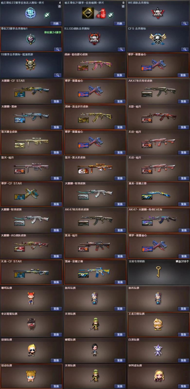 ★收藏好评! 由于异地登录保护机制,部分客户在使用客户端自动上号时会出现密码错误,注意本号密码不会错误,请多尝试5-6次!本账号已经过虚拟财产,请各位科技大神高抬贵手。请素质租号,文明游戏,谢谢大家配合!1;USP-雷暴,炽芒蝶刃,RPK-盘龙,QBZ03-金色蔷薇,M200-幻神,Scar Light-白虎,Kar98K-星神,