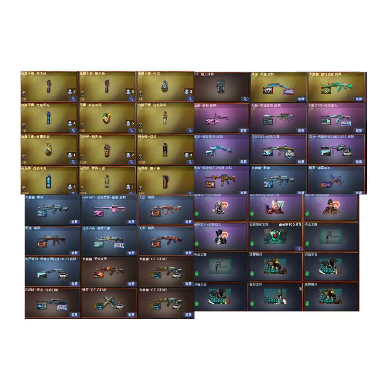 本游戏账号:英雄武器67个; 王者武器8个。 可以玩生化号、双全装、等模式。装备不多,但是主武器、副武器、近身武器够用 拥有完美游戏体验。重要的是,特殊装备有:柯尔特-荣耀世冠白鲨2023、M200-幻神、传说辉光、Kar98K-星神、AN94-超新星、M4A1-雷神、麒麟刺、Scar Light-白虎、柯尔特-竞技荣光、M200-竞技荣光、麒麟刺-堕天神、烟雾弹-堕天神、闪光弹-堕天神、擎天-竞技荣光、烟雾弹-竞技荣光、高爆手雷-竞技荣光、闪光弹-竞技荣光、M4A1-黑骑士、黑骑士-海王、M4A1-黑龙、AK47-火麒麟、QBZ03-金色蔷薇、加特林-炼狱、Barrett-毁灭、AWM-天龙、炫金雷神、王者破空枪刃、王者星光、王者雷影、高爆手雷-雷霆王者、关小雨、潘多拉、雷霆-β、堕天使、圣诞潘多拉-X、王者炫、QBZ03-金色蔷薇音效卡、Kar98K-星神音效卡、生化弹匣、等,随意畅选。 注意事项: A.游戏过程中请不要恶意挂机或者不文明发言 B.恶意挂机、顶号等行为将被拉黑;柯尔特-荣耀世冠白鲨2023,传说幽冥,柯尔特-冠军之特,炽芒蝶刃,隼,电竞教官-云悠悠,RPK-盘龙,