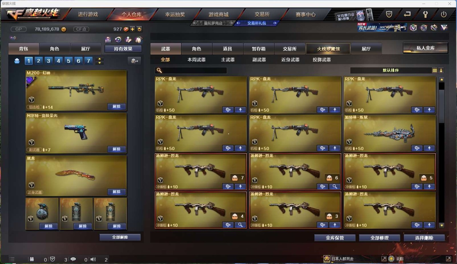 【幻神3件套!!!】【m200幻神+幻神音效卡+巅峰荣耀皮肤+传说女帝】【m200竞技荣光套装+电竞教官云悠悠】【王者星神】【白虎+电玩粉兔皮肤】【qbz03金色蔷薇+金色蔷薇音效卡+芭蕾特金色蔷薇】【6盘龙+6烈龙+1炼狱+斯泰尔蝴蝶】【毁灭+毁灭音效卡+荣耀之怒皮肤】【雷神+雷神音效卡+荣耀之魄皮肤】【王者霜心 王者凤吟 王者之裔 王者之幻 王者之势 王者之力】【火麒麟 黑鲨 常胜将军 黑鲨 黑骑士 玫瑰精灵 死神 白虎电玩蓝兔 裁决 极光 aa12雷霆】——【斯泰尔蝴蝶 m4a1刀锋 】——【柯尔特竞技荣光 天神 修罗*5】——【龙啸 尼泊尔雷霆 麒麟刺 麒麟刺堕天神 擎天 擎天竞技荣光 屠龙】——【堕天神投掷武器套装+竞技荣光投掷武器套装*4+雷霆投掷武器套装】——【角色】【传说女帝】【4防王者魅影】【荒漠琉璃 雨棠 月兔特工 魅影 葵】;传说女帝,RPK-盘龙,QBZ03-金色蔷薇,M200-幻神,Scar Light-白虎,