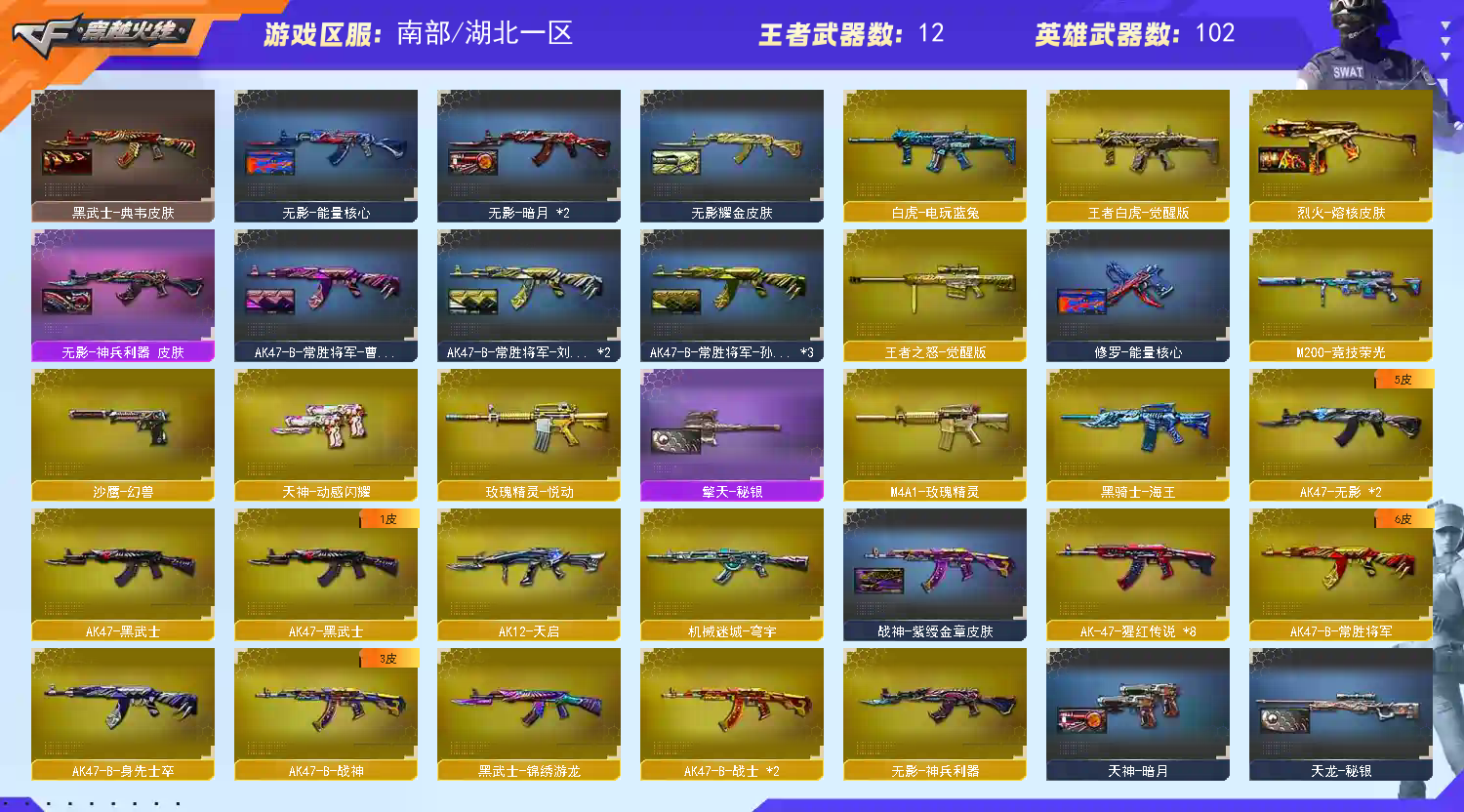 • 游戏区服:穿越火线 / 电信区 / 湖北一区